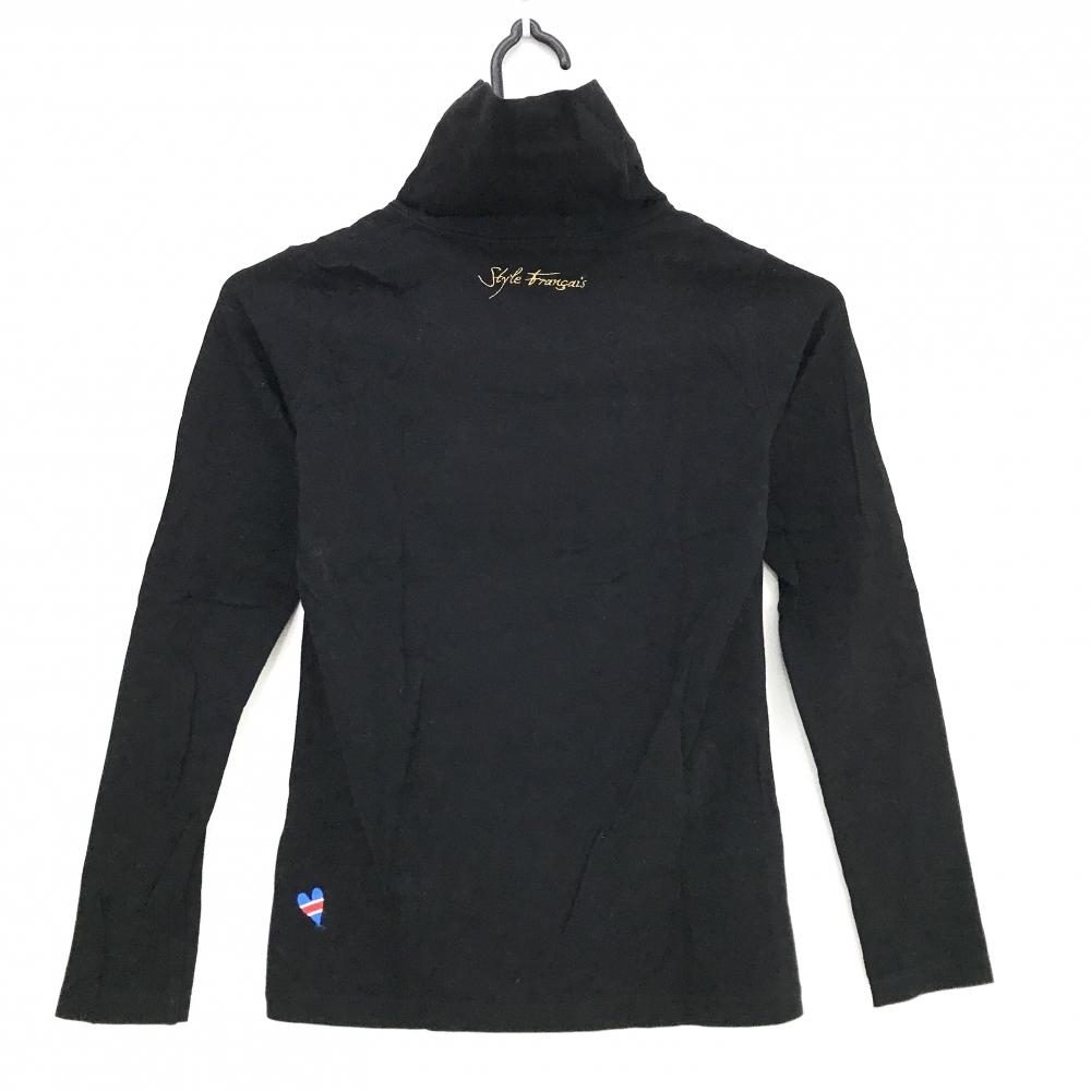 【美品】ルコックゴルフ 長袖ハイネックシャツ 黒×白 フロントプリント レディース S ゴルフウェア le coq sportif