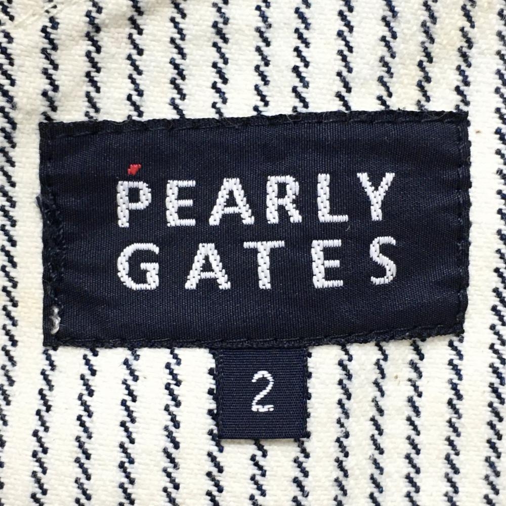 パーリーゲイツ スカート 白×ネイビー ストライプ コットン100% ティー装着可 レディース 2(L) ゴルフウェア PEARLY GATES