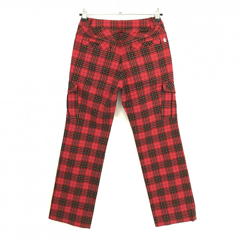 【超美品】マンシングウェア カーゴパンツ レッド×黒 チェック レディース 7 ゴルフウェア Munsingwear