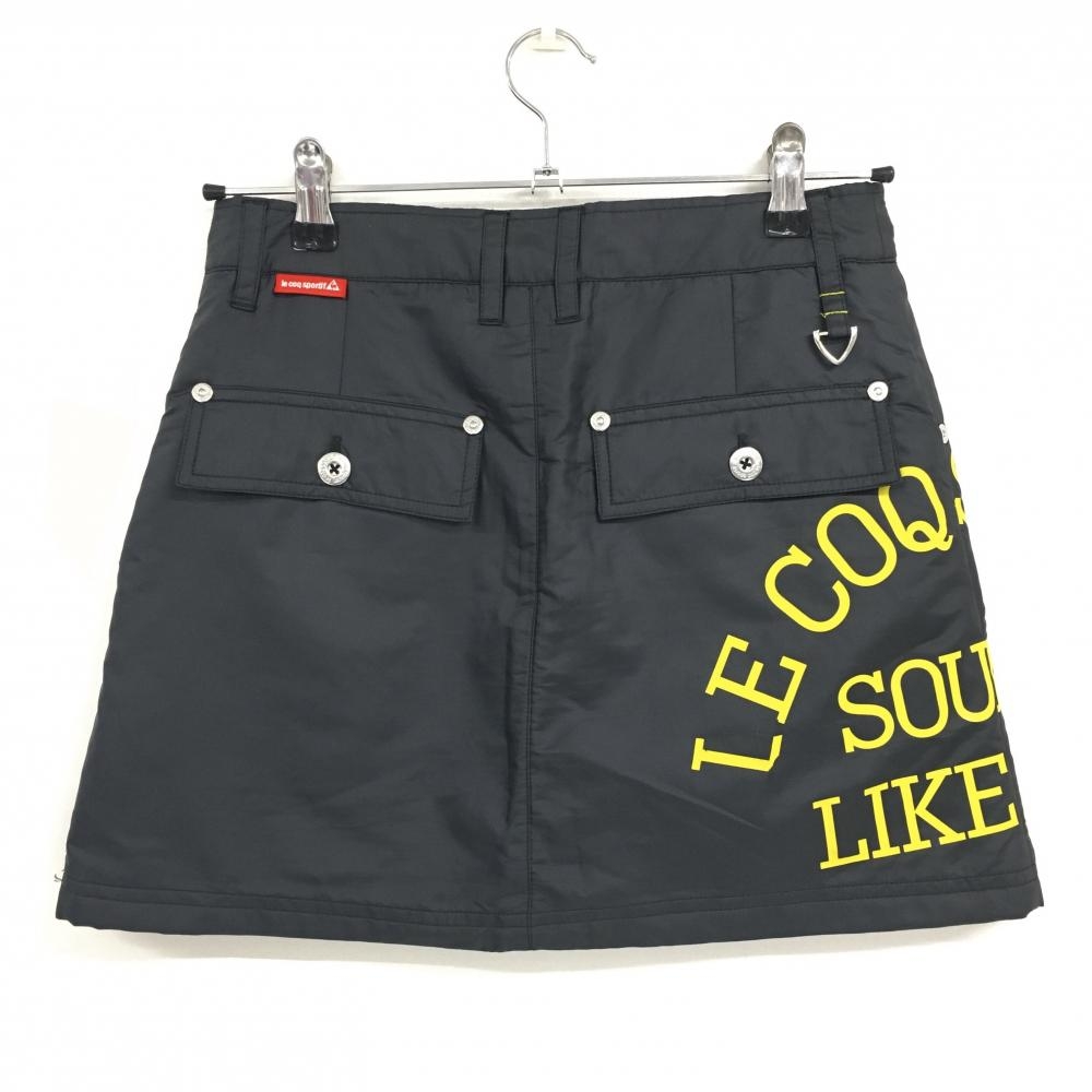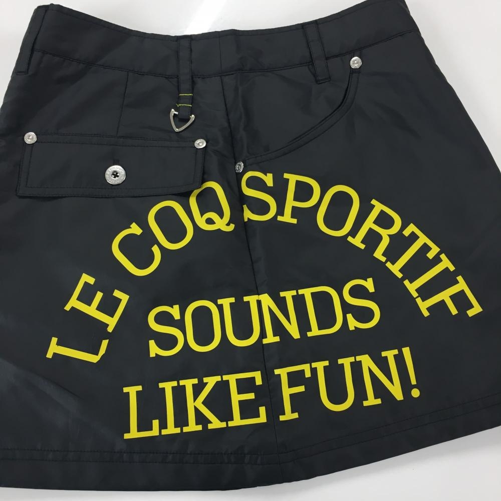 ルコックゴルフ スカート 黒×イエロー サイドビッグプリント ロゴ刺しゅう レディース 7 ゴルフウェア le coq sportif