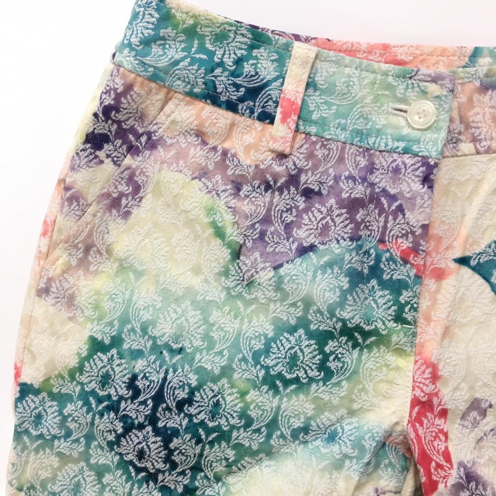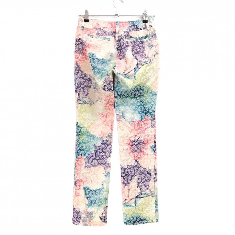 【超美品】キャロウェイ パンツ マルチカラー×白 総柄 タイダイ風 バックロゴ レディース SS ゴルフウェア Callaway
