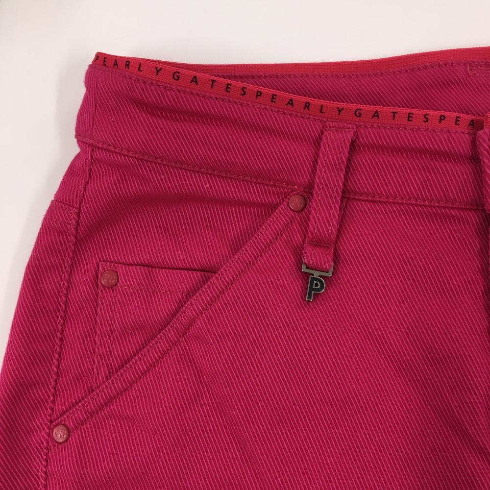 【超美品】パーリーゲイツ パンツ ダークピンク 斜めストライプ地模様 ストレッチ レディース 1(M) ゴルフウェア PEARLY GATES
