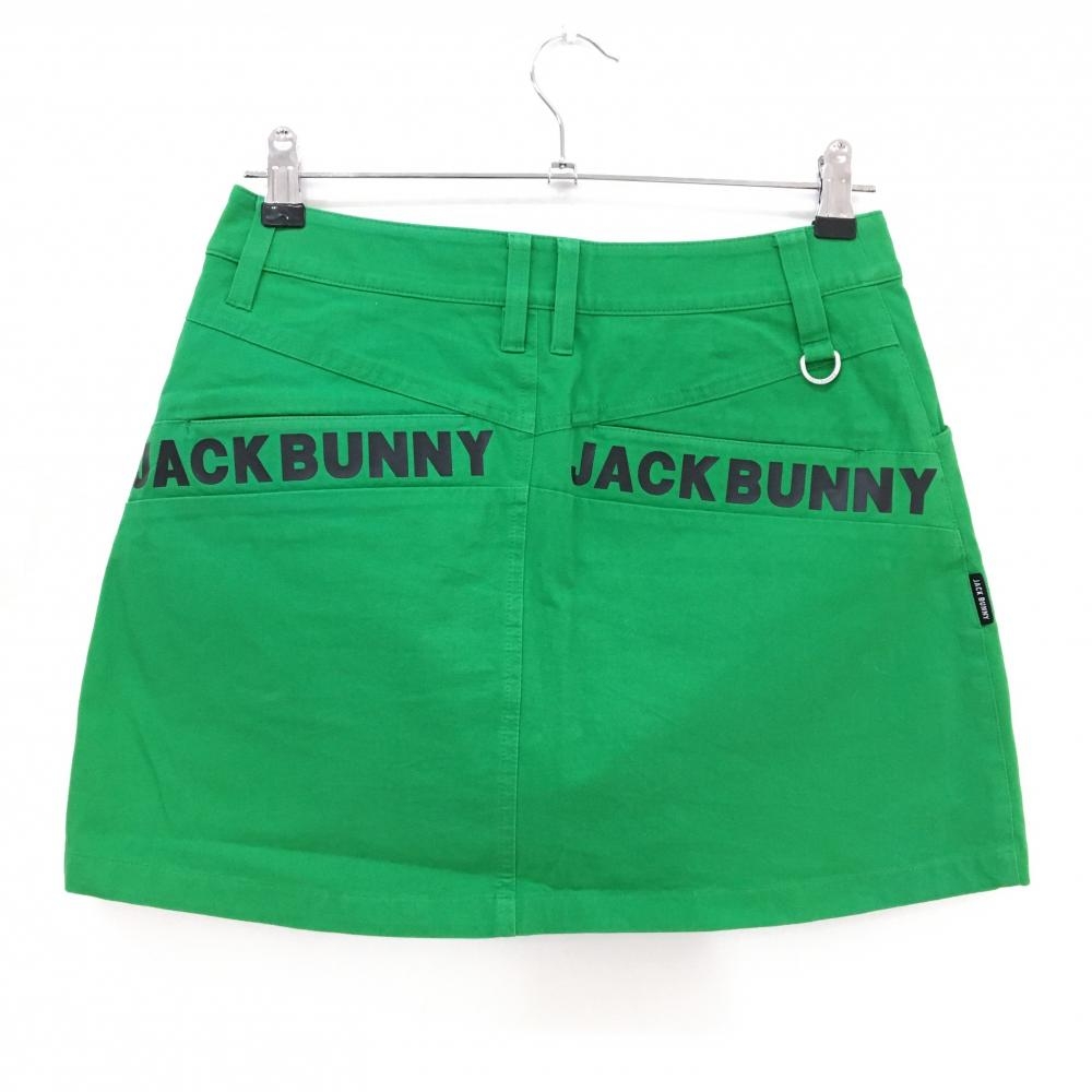 【超美品】ジャックバニー スカート グリーン ロゴ黒 ストレッチ バックロゴ レディース 1(M) ゴルフウェア Jack Bunny