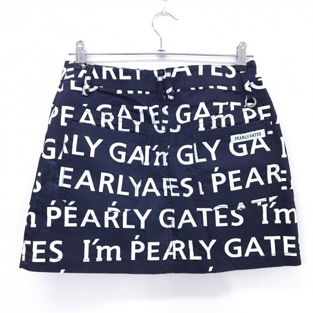 パーリーゲイツ スカート ネイビー×白 ロゴ総柄 内側30周年 レディース 1(M) ゴルフウェア PEARLY GATES