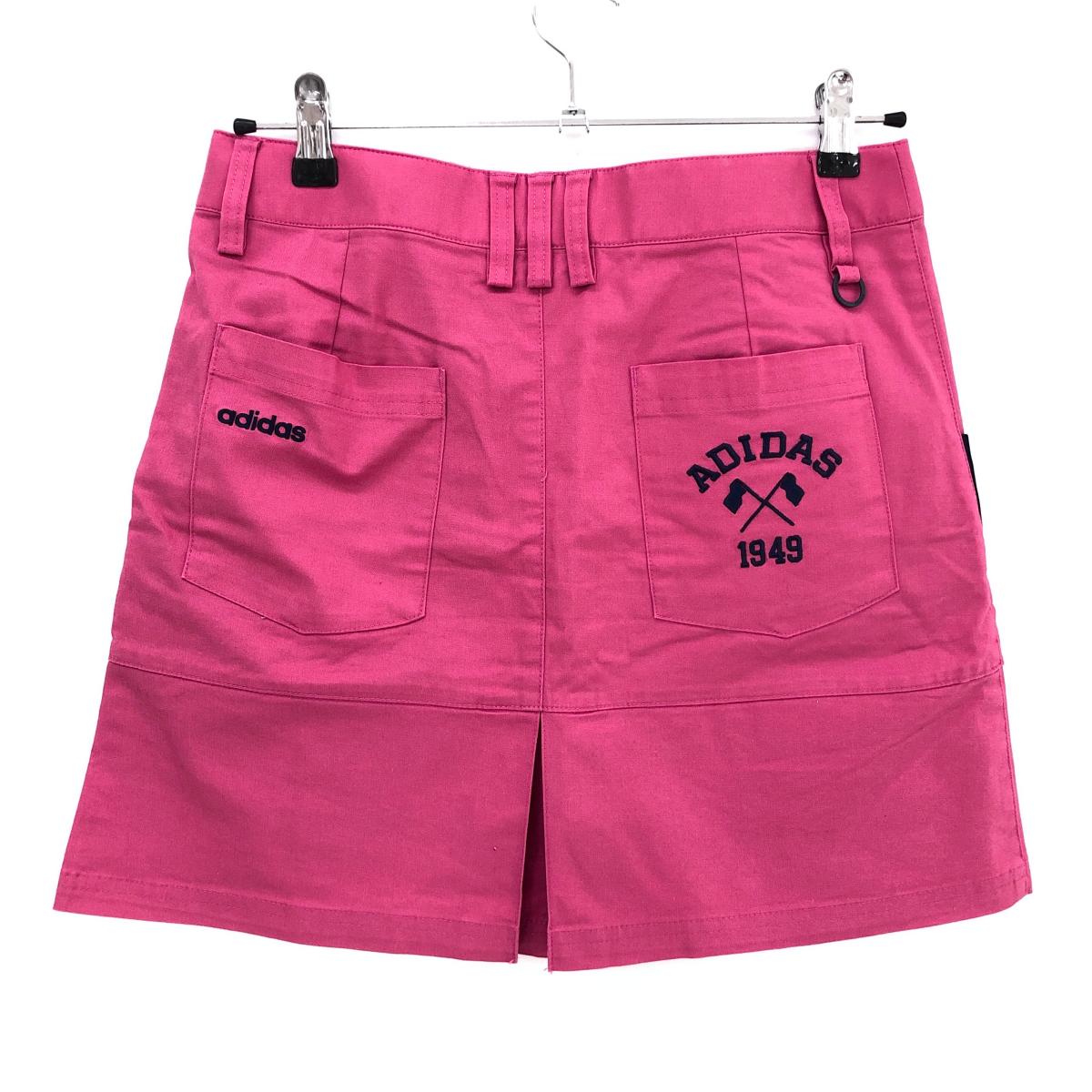 【美品】アディダス スカート ピンク×ネイビー 裾ボックスプリーツ ロゴ刺しゅう レディース M/M ゴルフウェア adidas