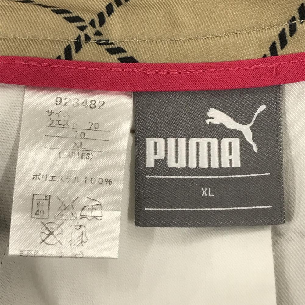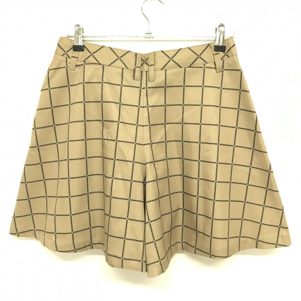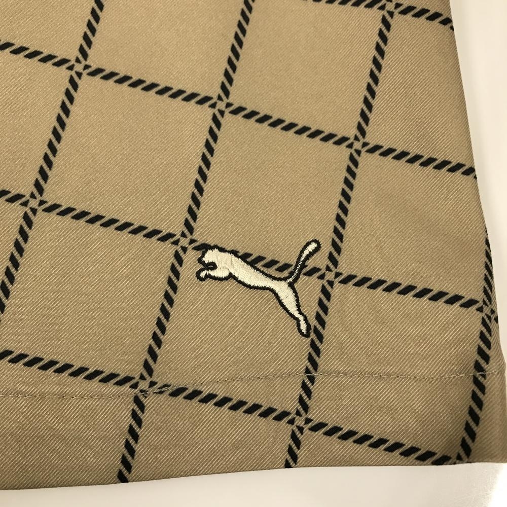 【超美品】プーマ キュロットスカート ベージュ×黒 格子柄 ロゴ刺しゅう レディース XL ゴルフウェア PUMA