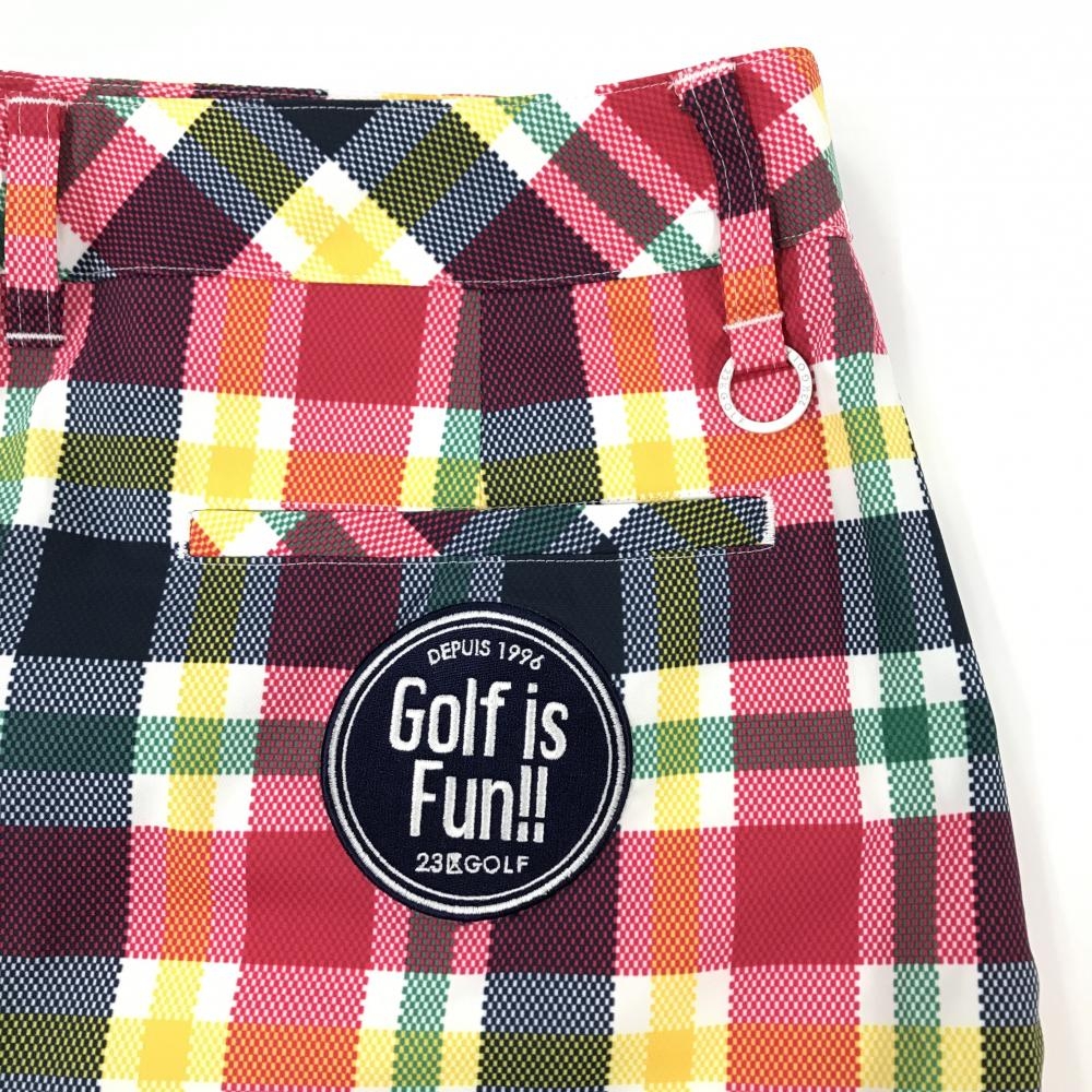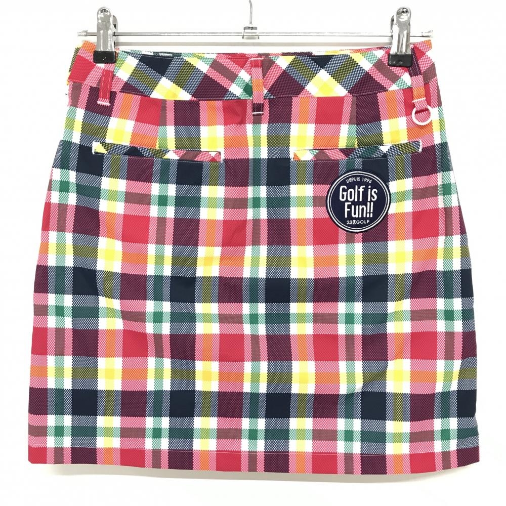 【超美品】23区ゴルフ スカート 白×マルチカラー チェック柄 レディース 61 ゴルフウェア 23区