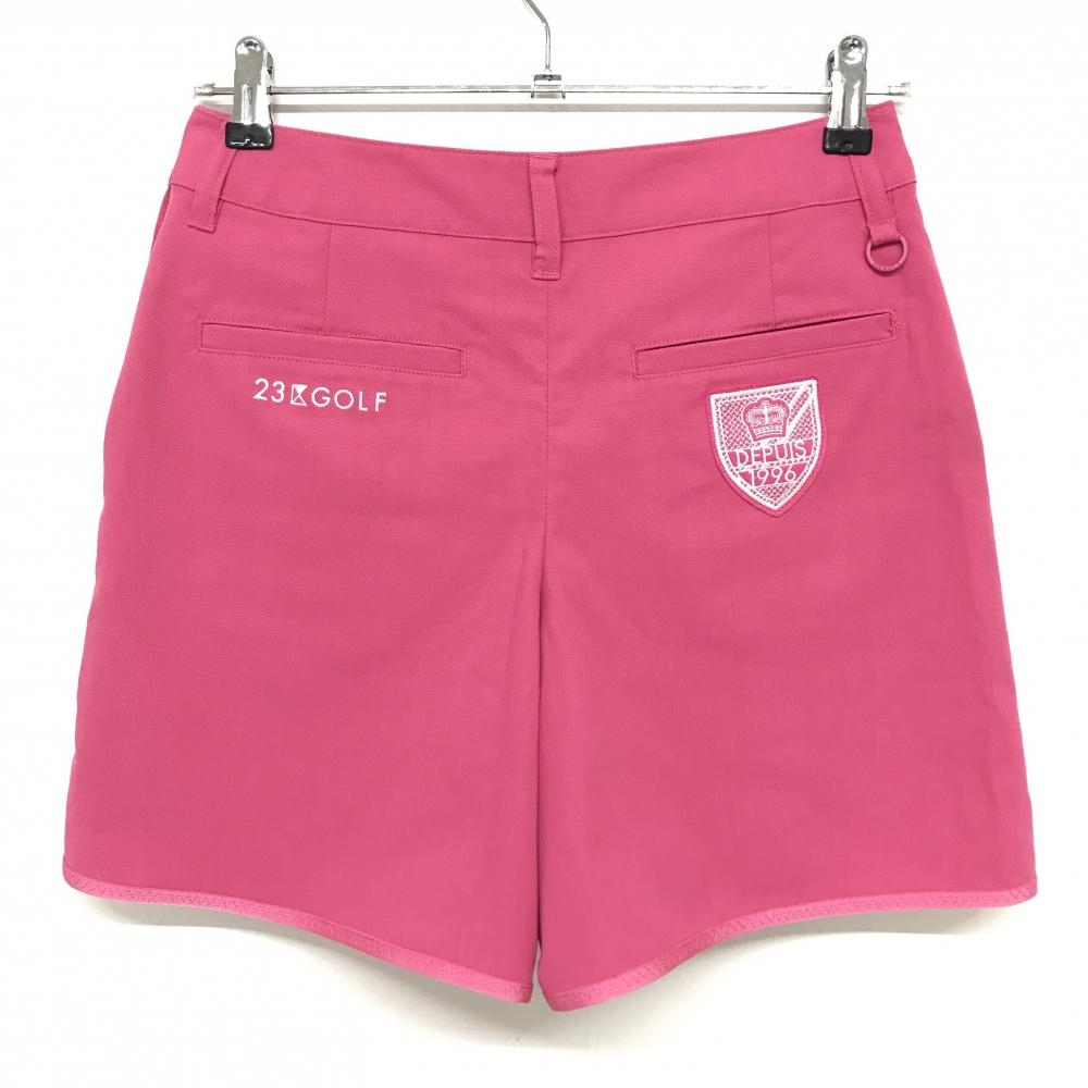 【美品】23区ゴルフ キュロットスカート ピンク×白 ラインストーンロゴ バックロゴ レディース 61 ゴルフウェア 23区