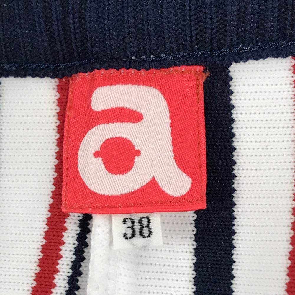 【超美品】アルチビオ ニットスカート 白×ネイビー×レッド ストライプ ウエストゴム 裾ロゴ レディース 38(M) ゴルフウェア archivio