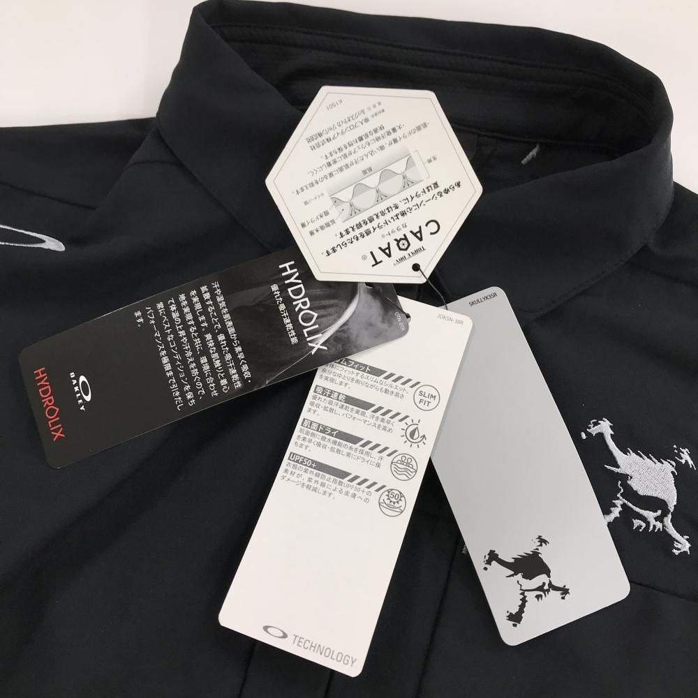【新品】オークリー 長袖シャツ 黒 ピンドット地模様 袖プリント 吸汗速乾 肌面ドライ UVケア メンズ M ゴルフウェア Oakley