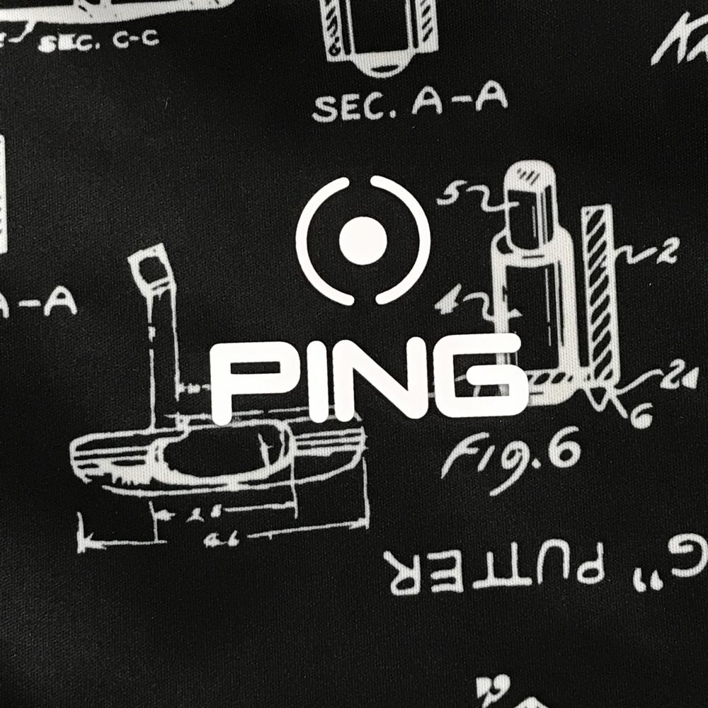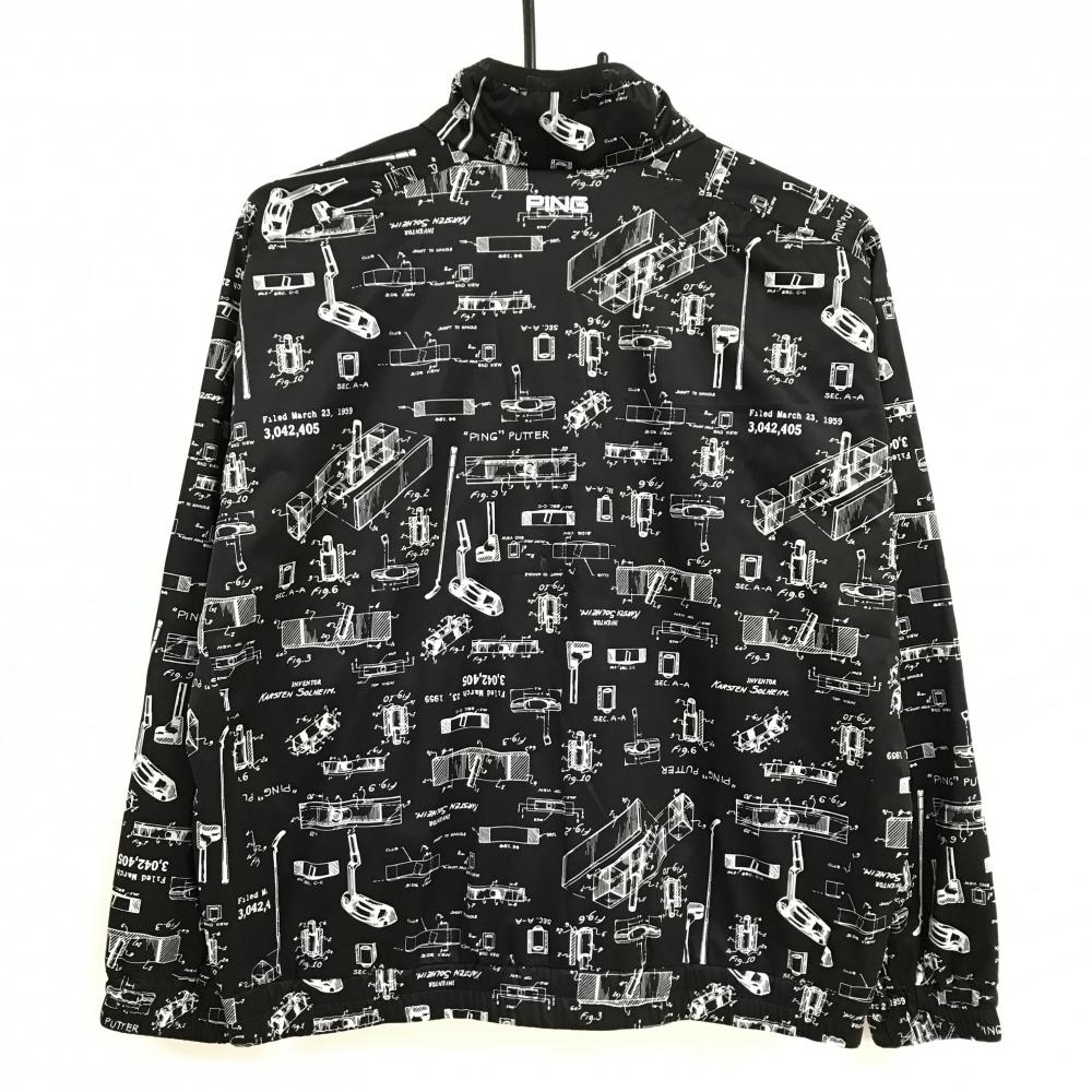 【超美品】ピン ジャケット 黒×白 総柄 ロゴプリント 裾ゴム レディース M ゴルフウェア PING