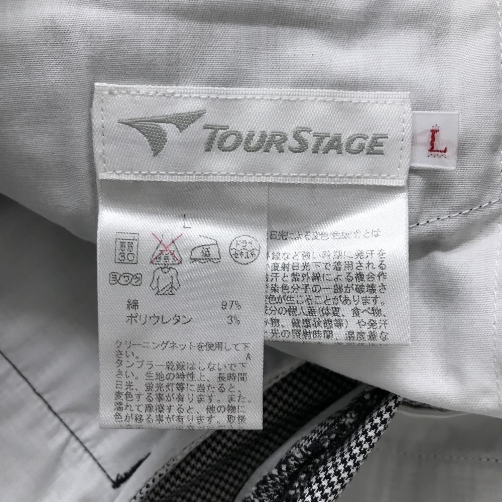 【超美品】ツアーステージ パンツ 白×黒 千鳥格子 ストレッチ ロゴ刺しゅう レディース L ゴルフウェア TOURSTAGE