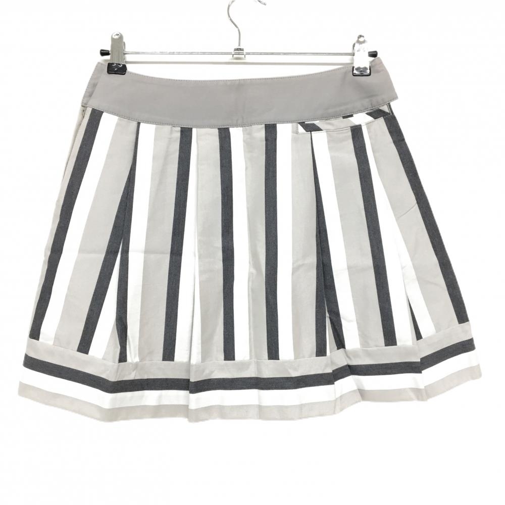 【超美品】23区スポーツ スカート ライトグレー×ダークグレー ストライプ 裾ボーダー レディース 64(M) ゴルフウェア 23区