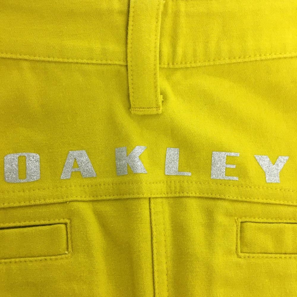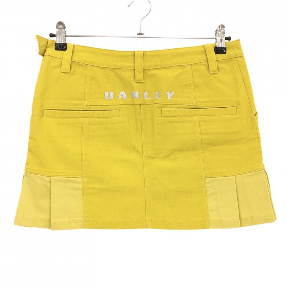 【超美品】オークリー スカート マスタードイエローシルバーロゴ サイドプリーツ レディース M ゴルフウェア Oakley