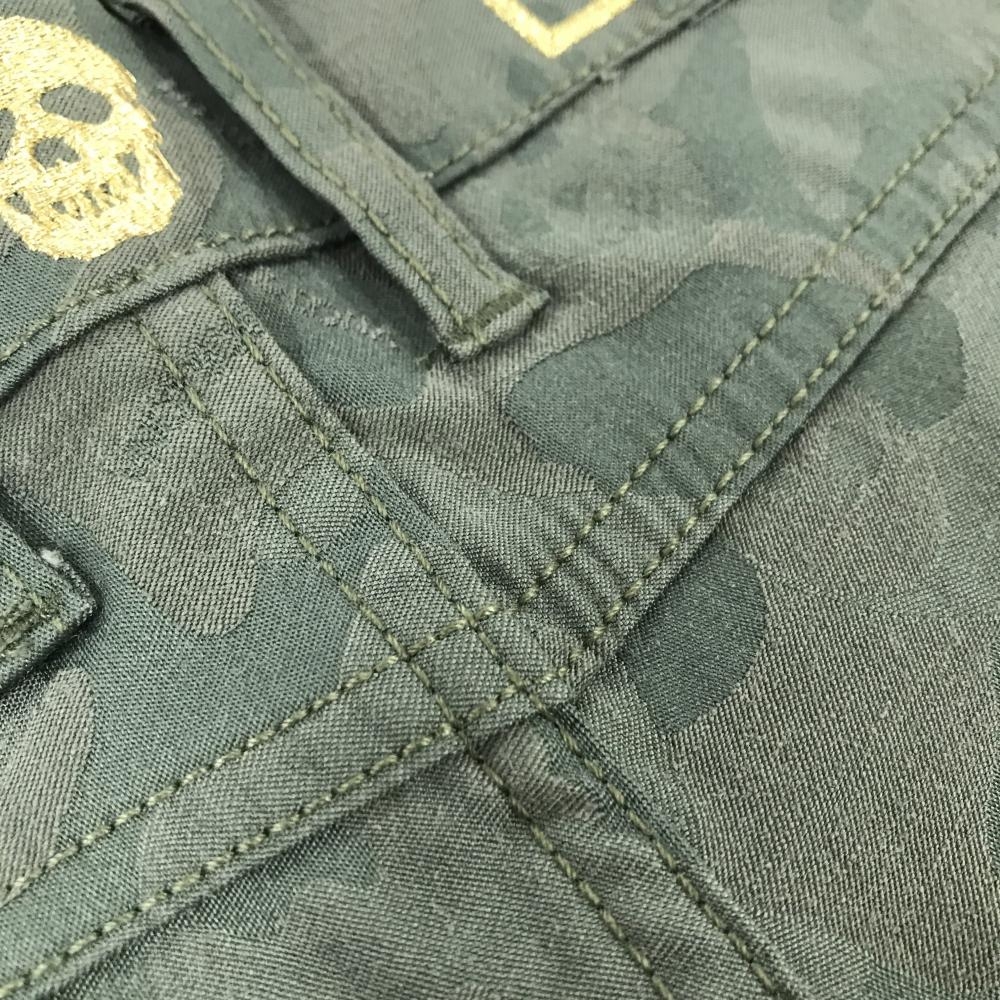 マークアンドロナ パンツ カーキ 総柄地模様 カモフラ スカル 迷彩 レディース サイズ表記なし ゴルフウェア サンプル品 MARK&LONA