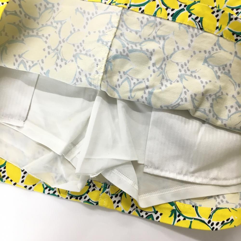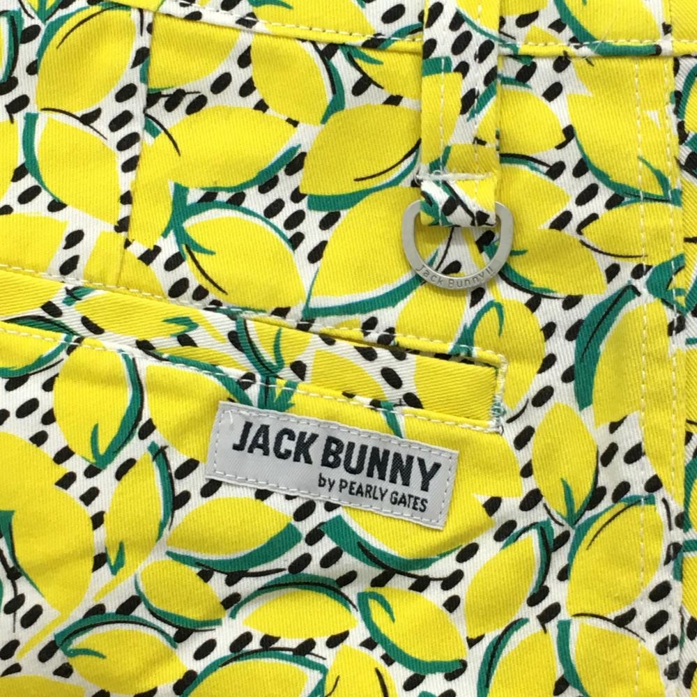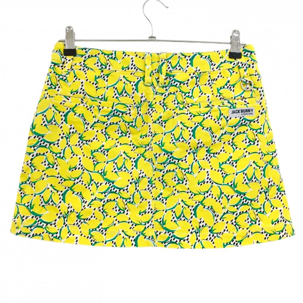 【美品】ジャックバニー スカート 白×イエロー×グリーン 総柄 内側インナーパンツ ストレッチ レディース 2(L) ゴルフウェア Jack Bunny