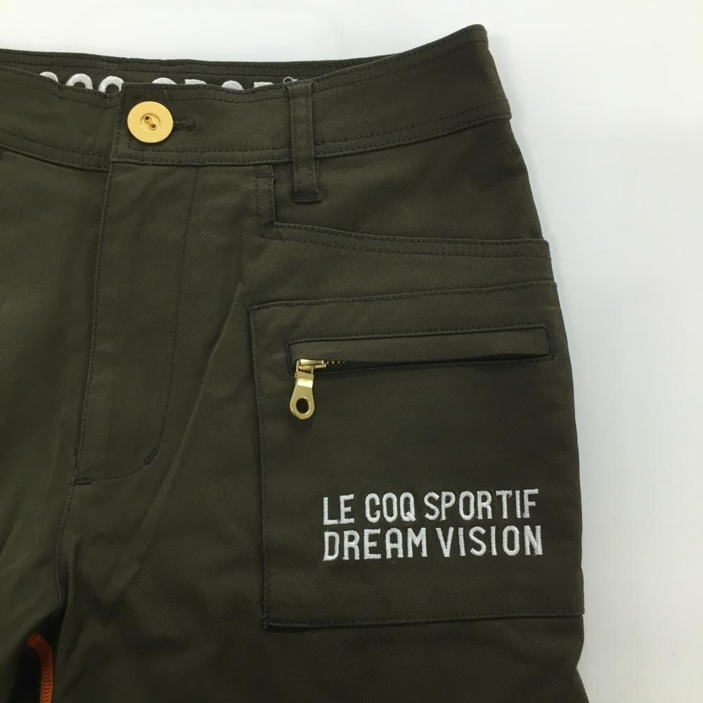 【美品】ルコックゴルフ パンツ カーキ×オレンジ ポケット複数 裏地付き ストレッチ レディース 7 ゴルフウェア le coq sportif