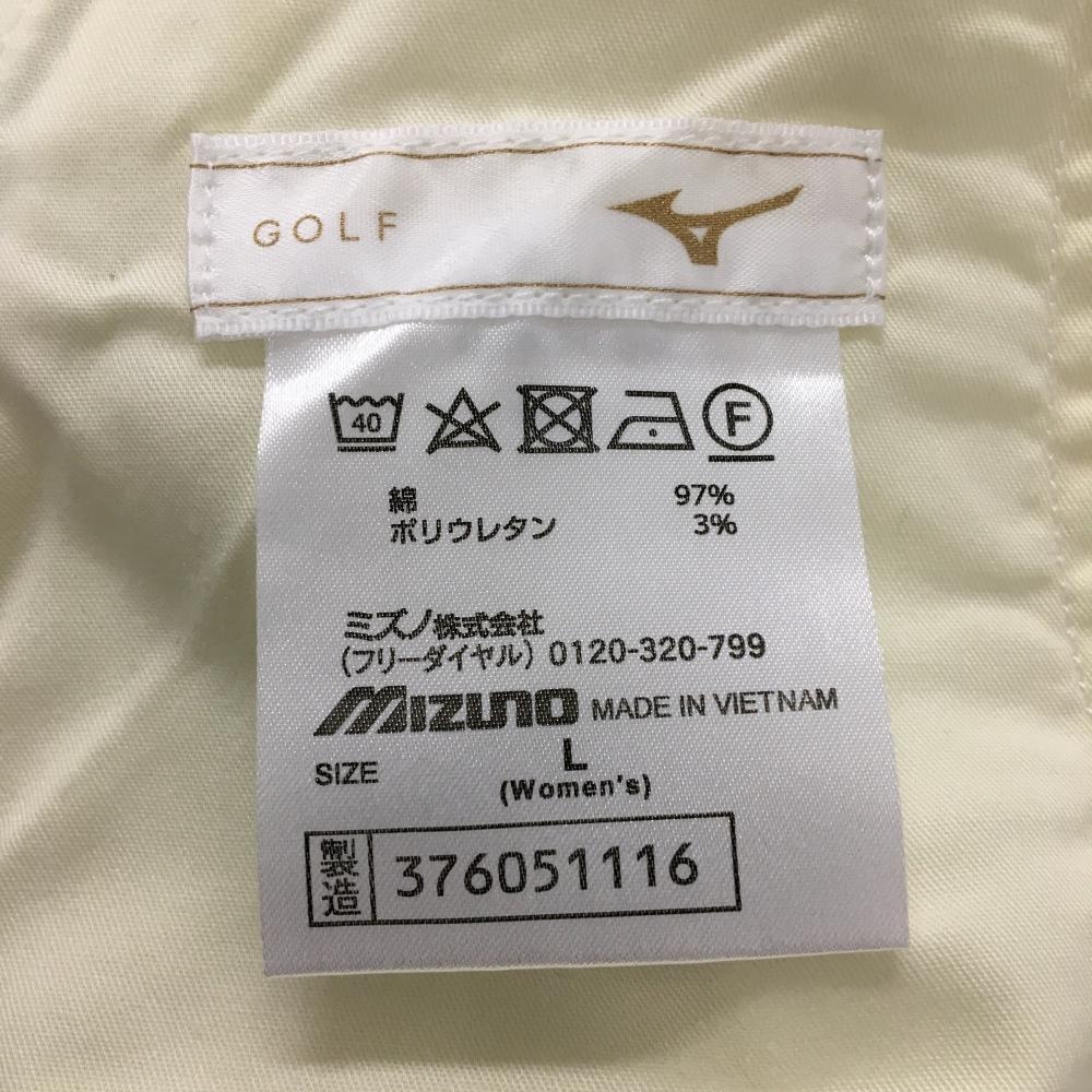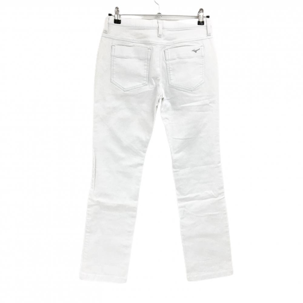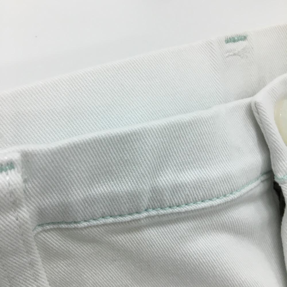 【美品】ミズノゴルフ パンツ 白系 ステッチミントブルー コットン混 レディース L ゴルフウェア MIZUNO