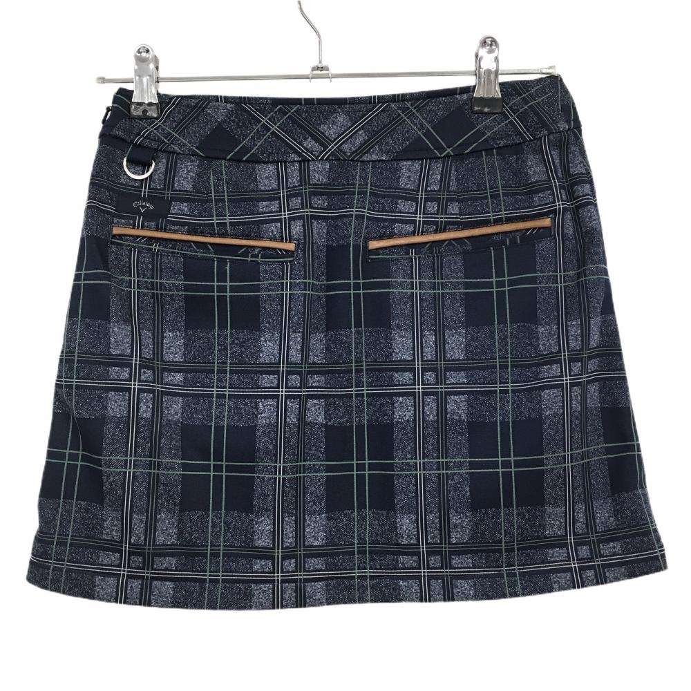 【美品】キャロウェイ スカート ネイビー×グリーン チェック柄 一部合成皮革 レディース SS ゴルフウェア Callaway