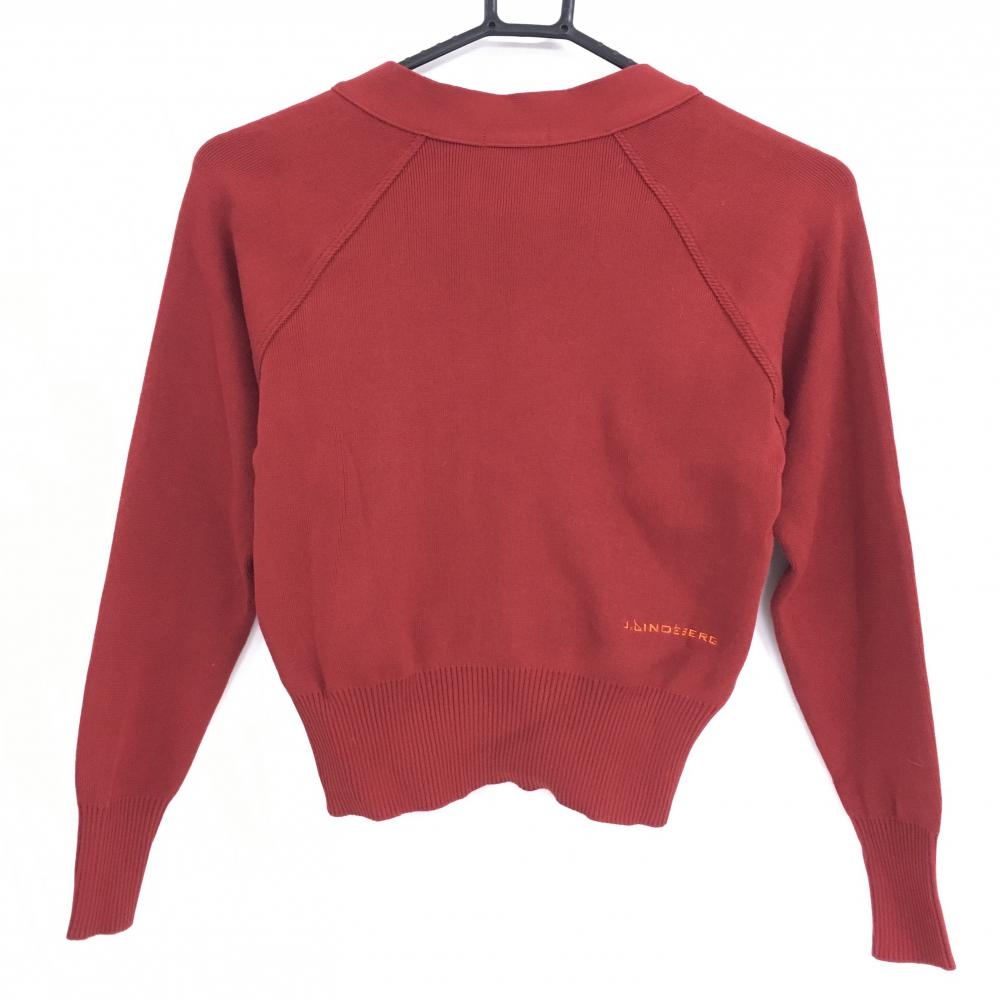 【超美品】ジェイリンドバーグ ニットカーディガン レッド ショート丈 ロゴ刺しゅう レディース XS ゴルフウェア J.LINDEBERG