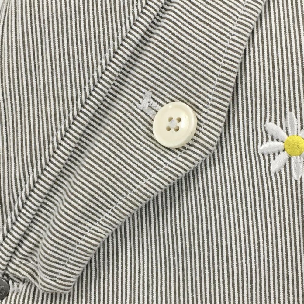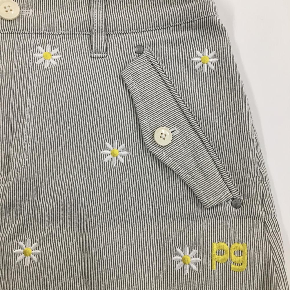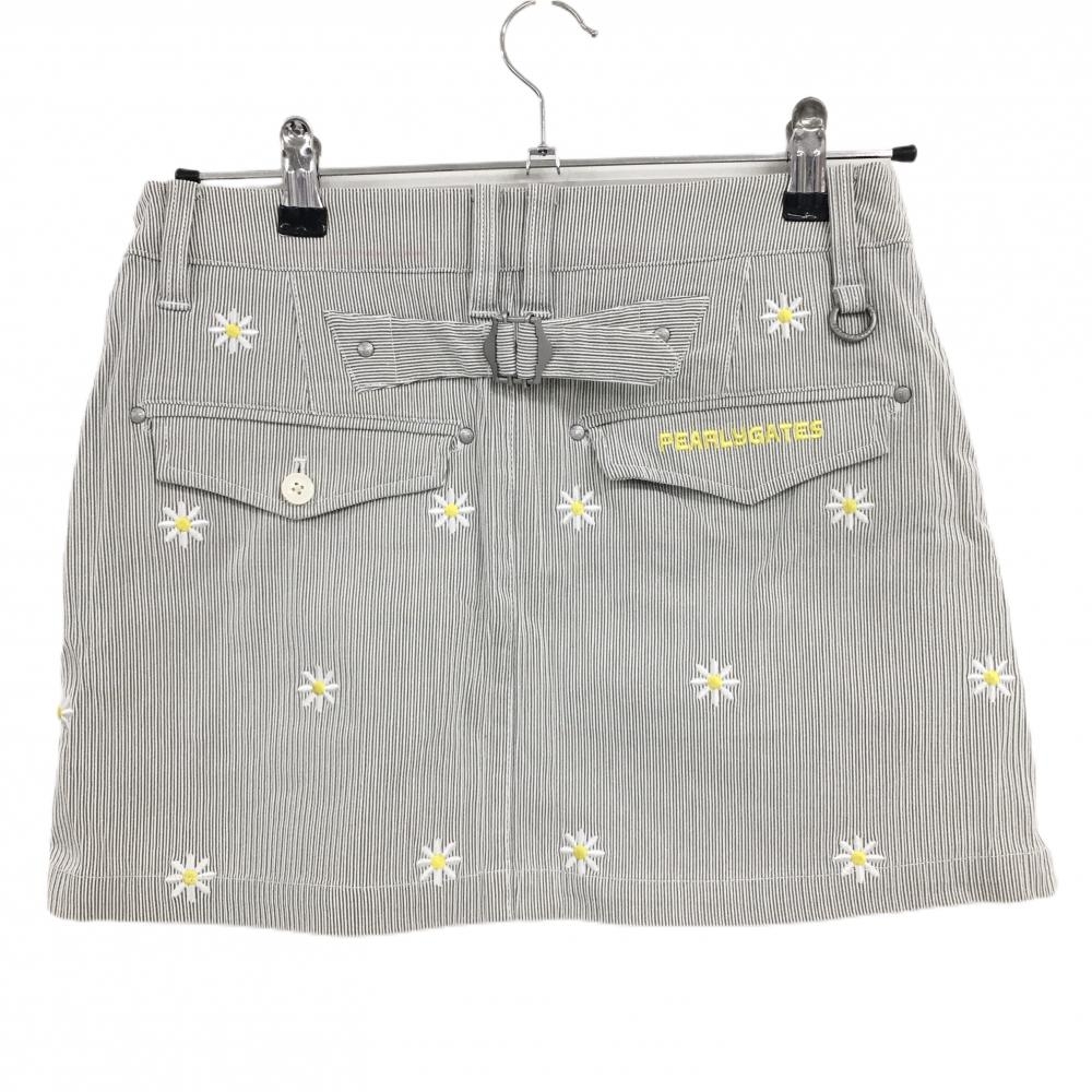パーリーゲイツ スカート グレー×白 細ストライプ 花刺しゅう総柄 レディース 0(S) ゴルフウェア PEARLY GATES
