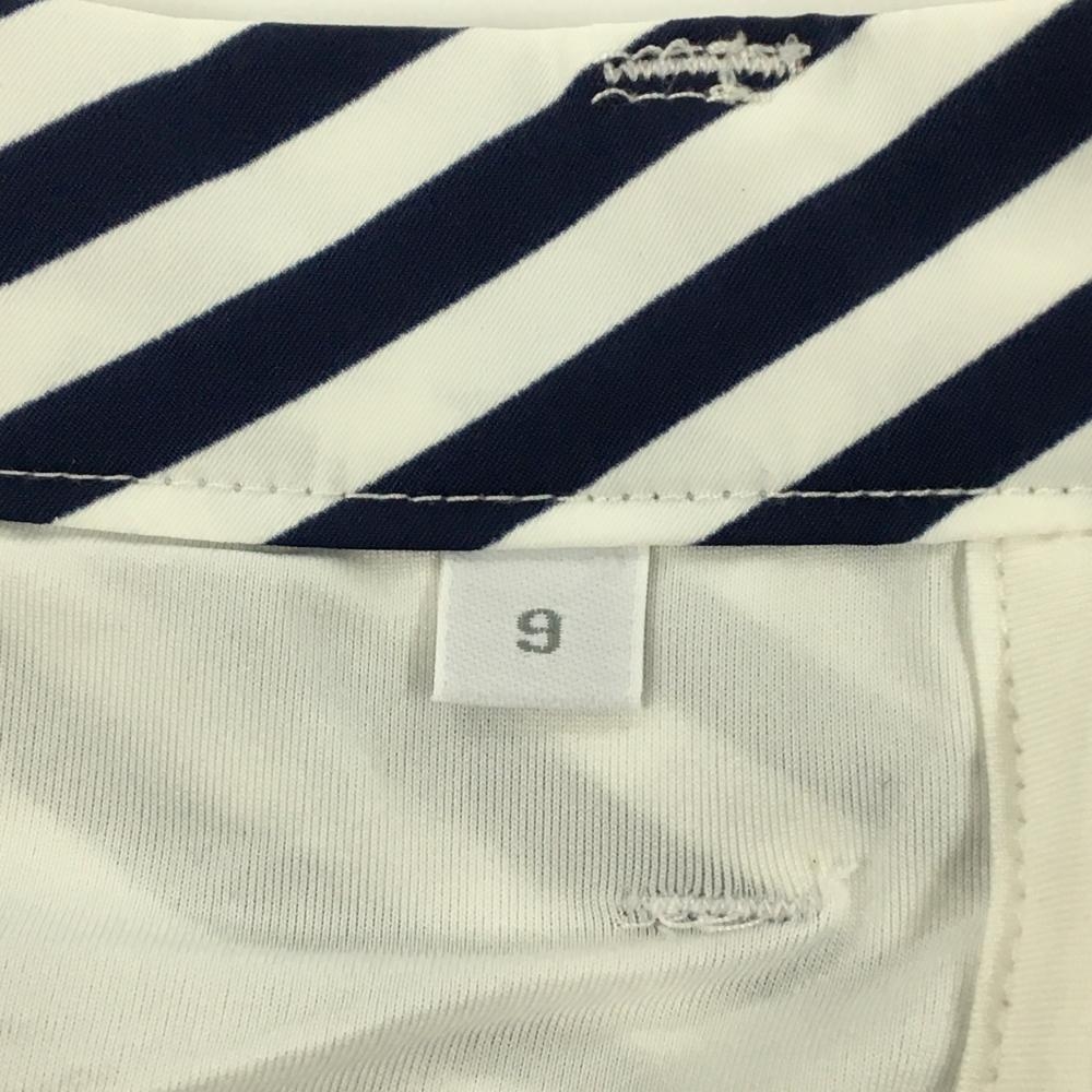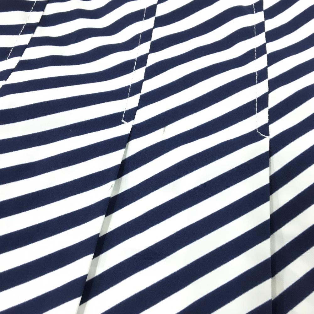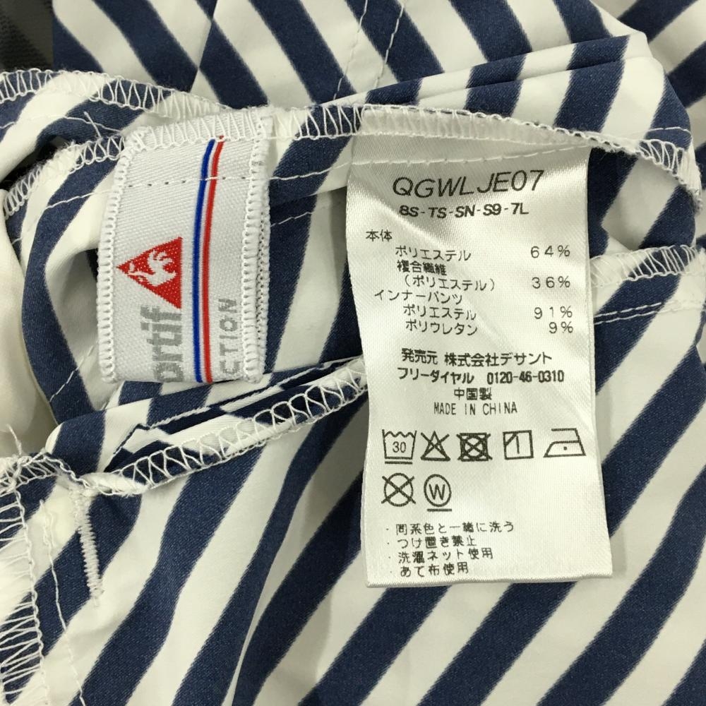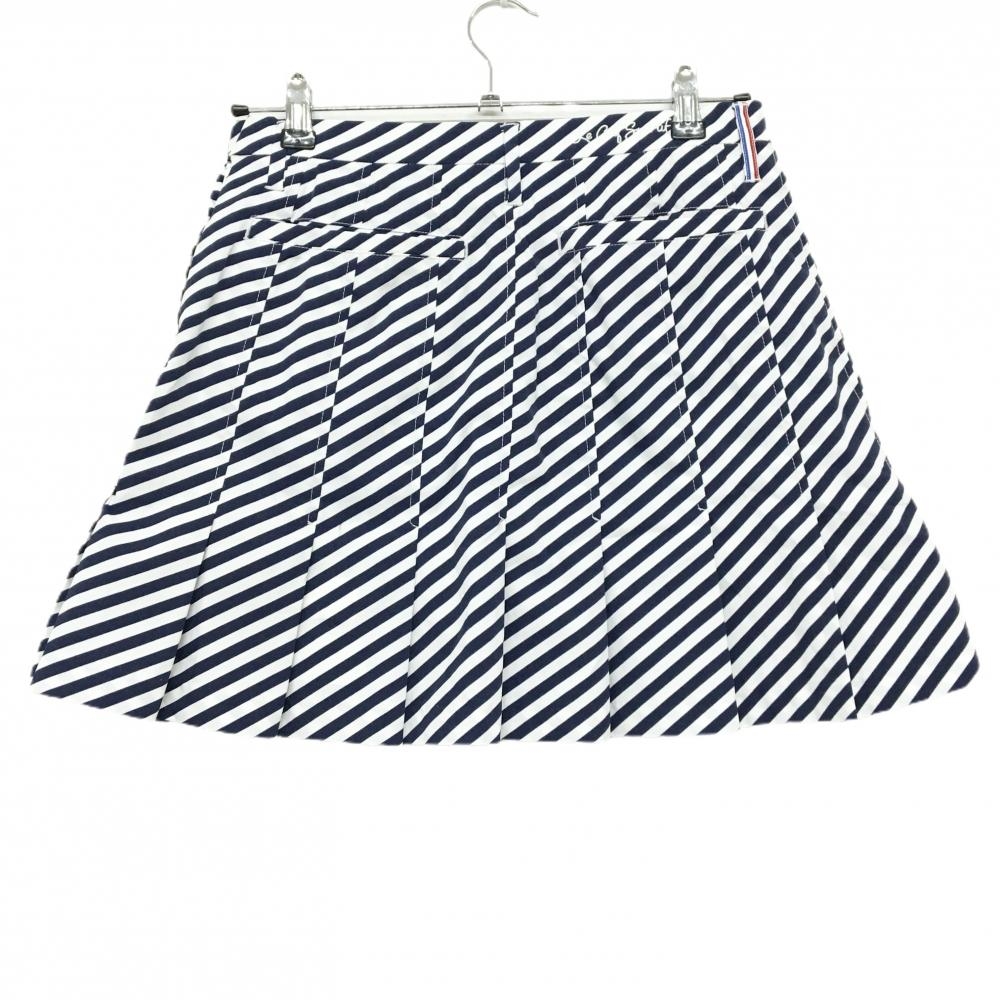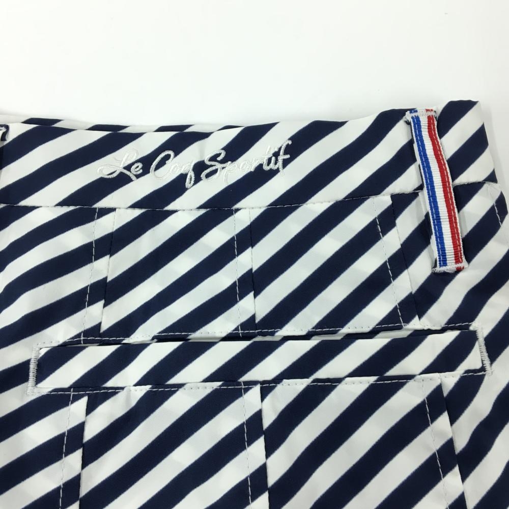 【美品】ルコックゴルフ スカート 白×ネイビー 斜めストライプ プリーツ 内側インナーパンツ レディース 9 ゴルフウェア le coq sportif
