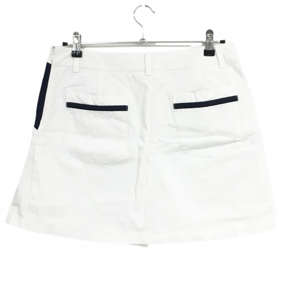 【超美品】キャロウェイ スカート 白×ネイビー ロゴ刺しゅう ボタン 内側パンツ レディース LL ゴルフウェア Callaway