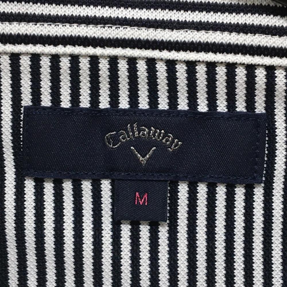 【超美品】キャロウェイ 長袖ポロシャツ 白×黒 ストレッチ ボタンダウン レディース M ゴルフウェア Callaway