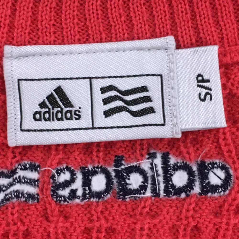 【超美品】アディダス ニットベスト レッド系 ケーブル編み ウール混 レディース S/P ゴルフウェア adidas