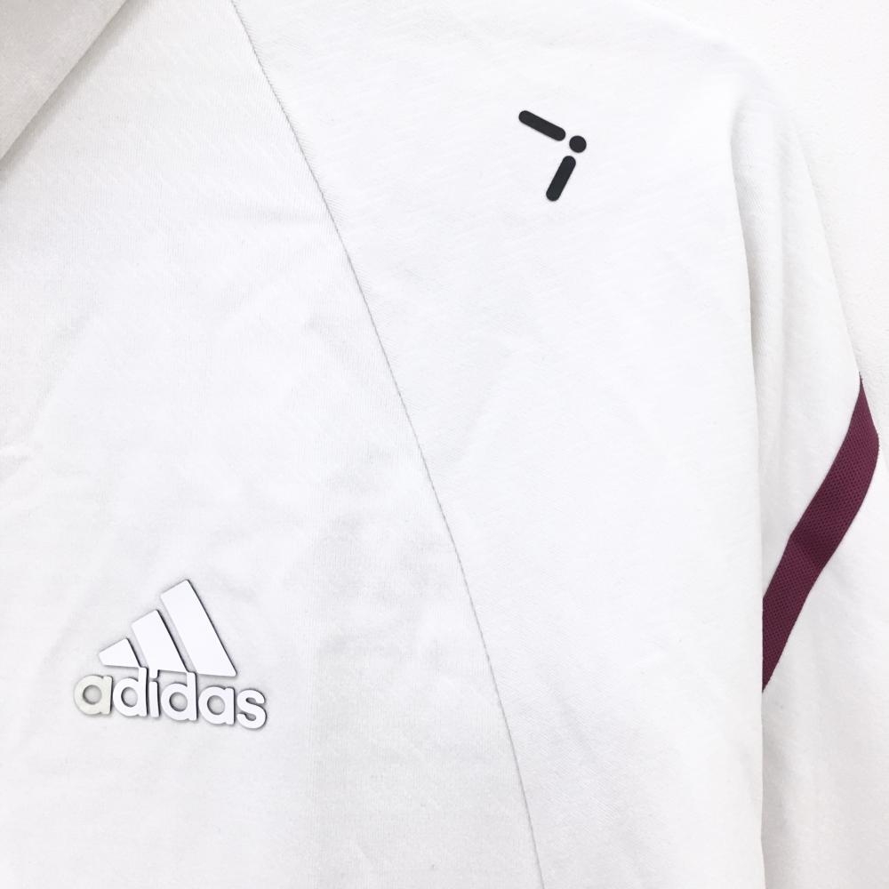 【美品】アディダス 長袖ポロシャツ 白 地模様 袖ラインボルドー ロゴ一部変色 メンズ L ゴルフウェア adidas