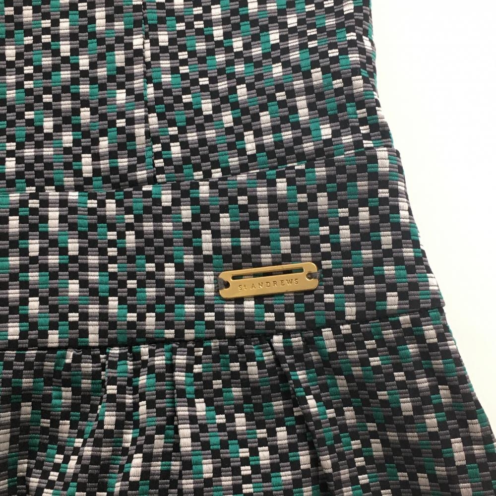 【美品】セントアンドリュース 長袖ハイネックワンピース グレー×グリーン レディース L ゴルフウェア St ANDREWS