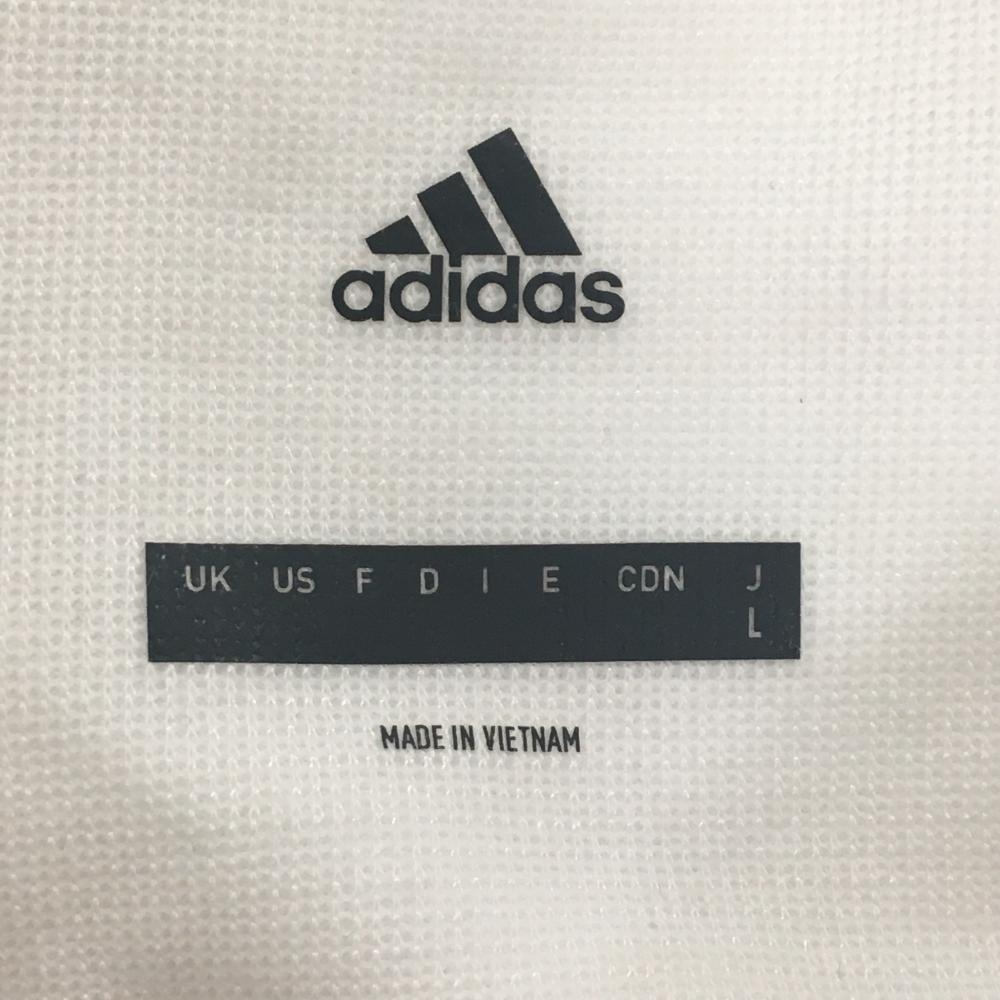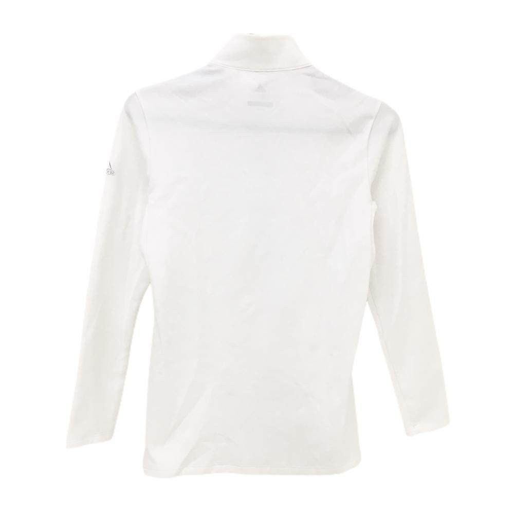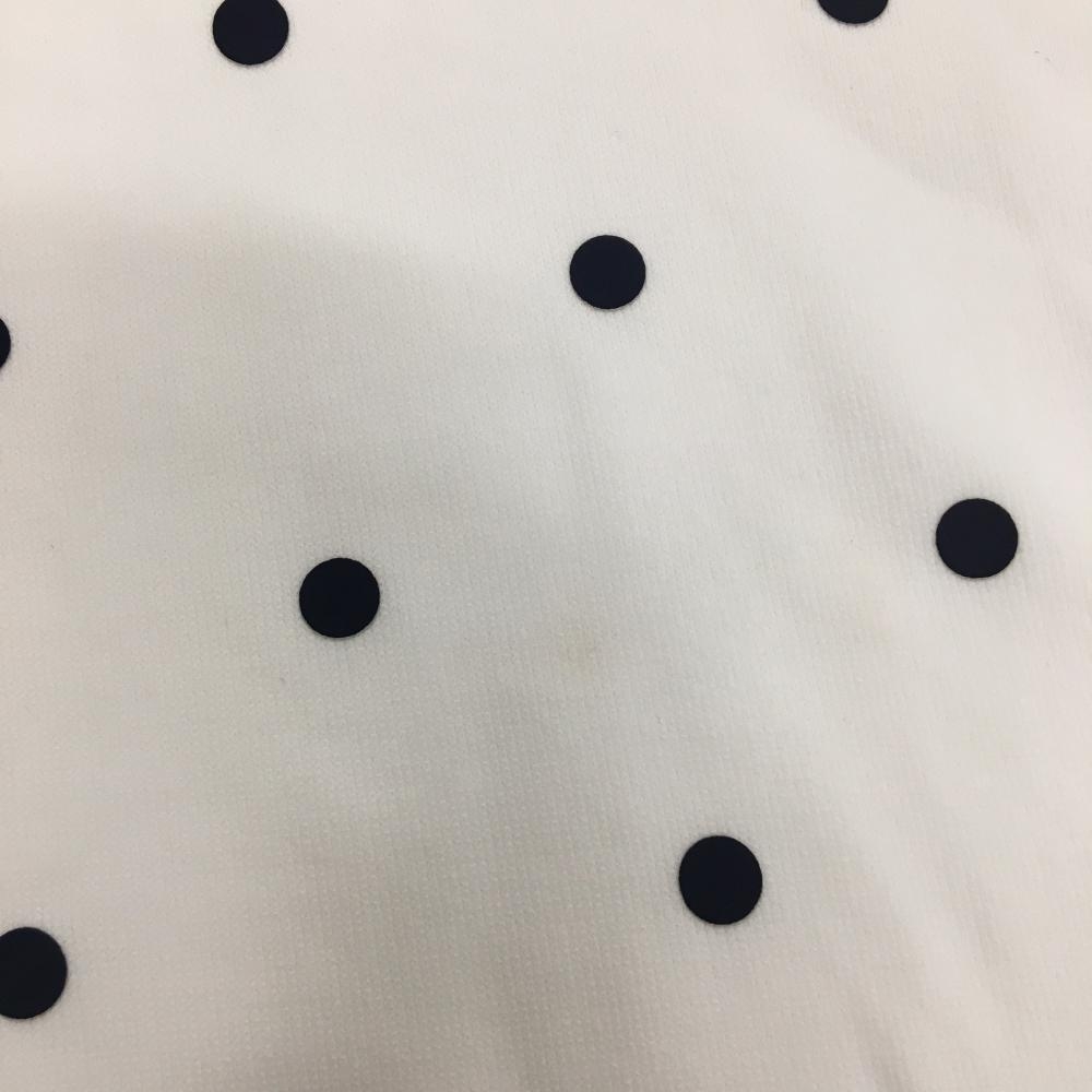 アディダス 長袖ハイネックシャツ 白×ネイビー ドット柄 スナップボタン レディース L ゴルフウェア adidas