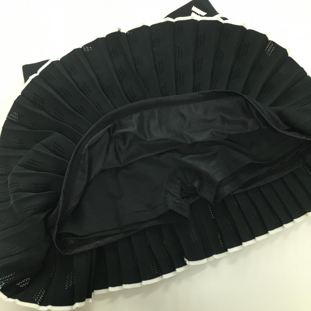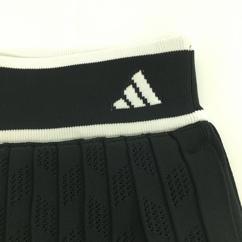 【超美品】アディダス ニットプリーツスカート 黒×白 透かし編み 裏地付 内側インナーパンツ レディース L ゴルフウェア adidas