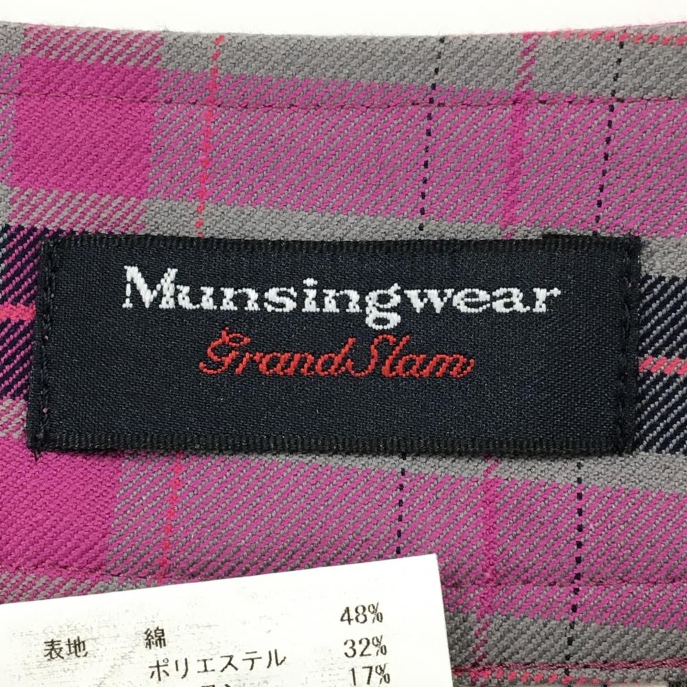 【美品】マンシングウェア スカート グレー×ピンク系×ネイビー チェック 裾プリーツ レディース 11 ゴルフウェア Munsingwear