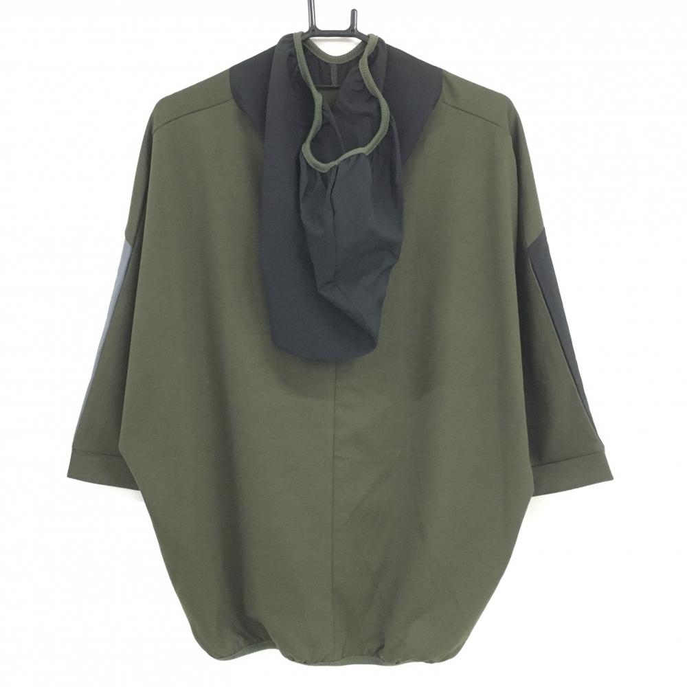 【新品】ハッシュパピー フード半袖シャツ カーキ×黒 異素材切替 レディース LL ゴルフウェア HushPuppies