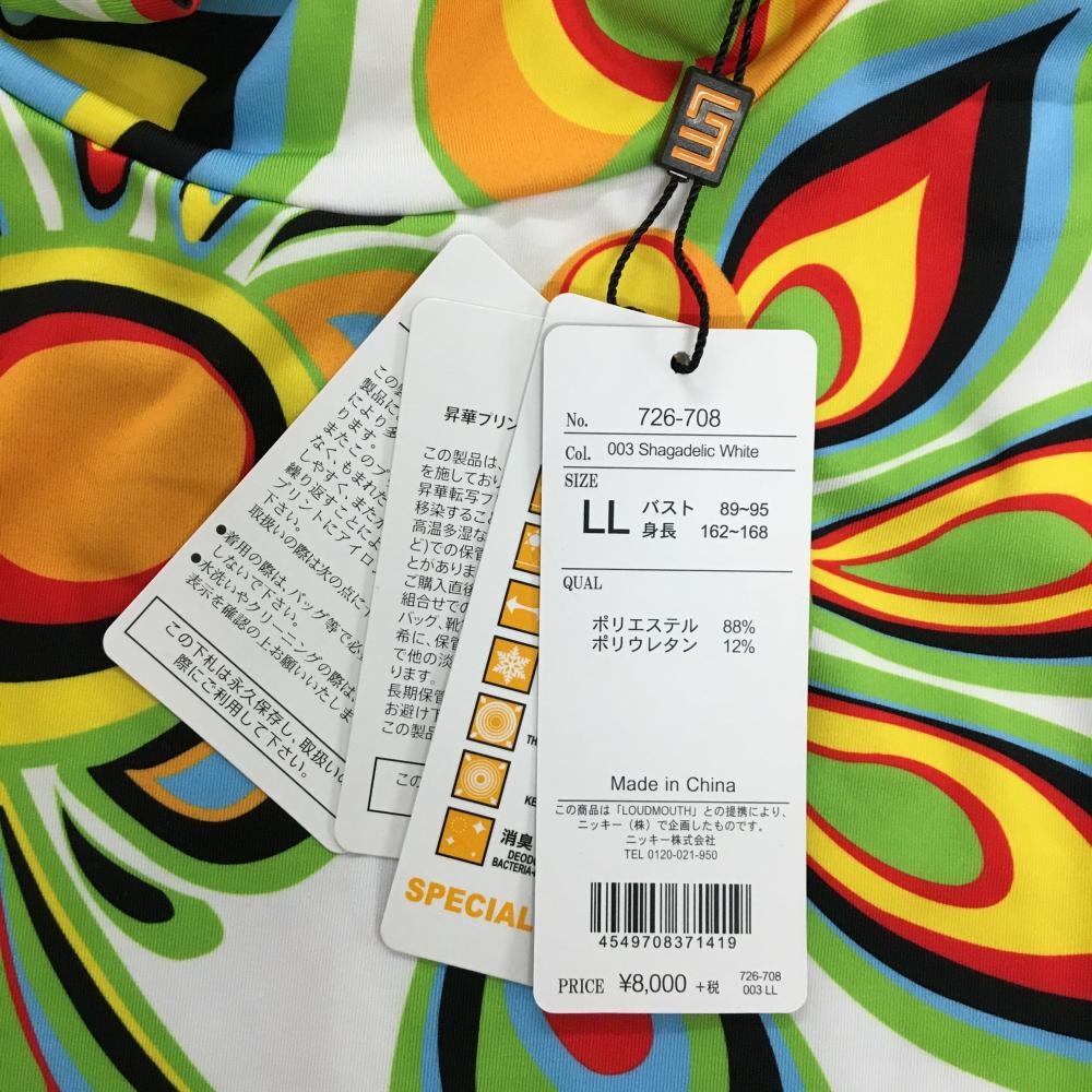 【新品】ラウドマウス 長袖ハイネックシャツ 白×ライトグリーン 総柄 シャガデリックホワイト レディース LL ゴルフウェア LOUDMOUTH