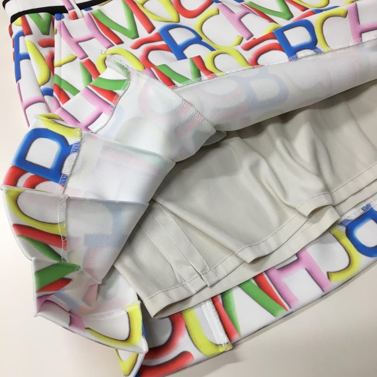 【超美品】アルチビオ スカート 白×マルチカラー ロゴ総柄 ウエストゴム レディース 38(M) ゴルフウェア archivio