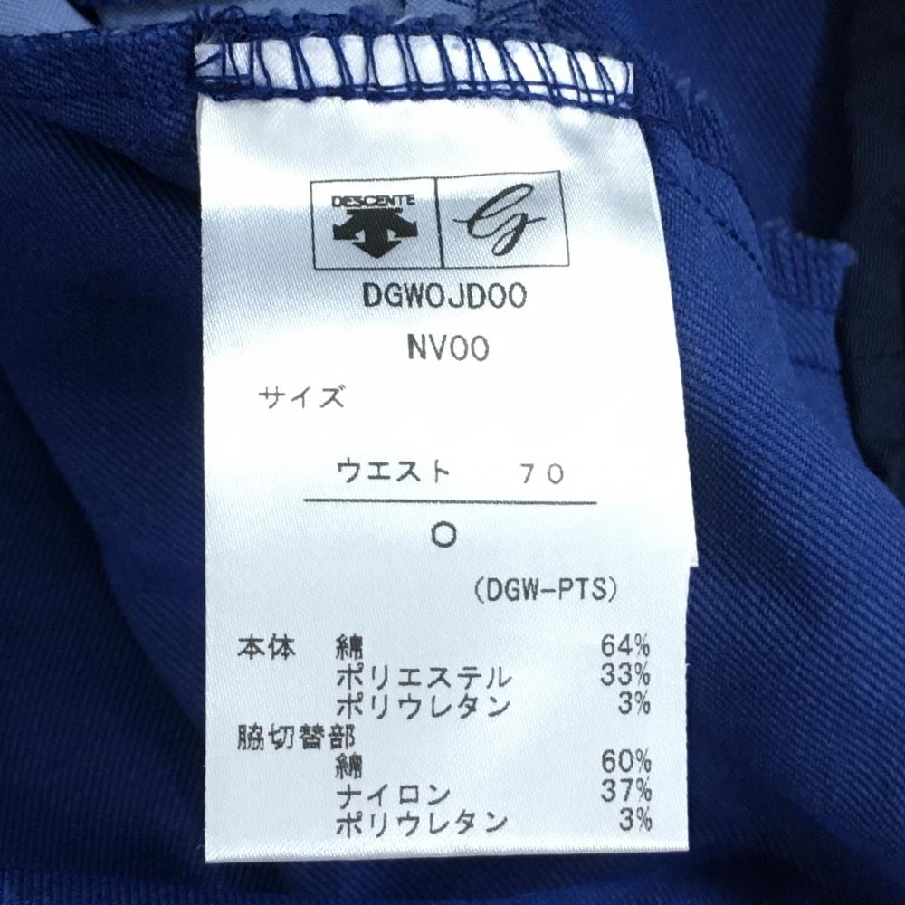 【美品】デサントゴルフ パンツ ブルー系×ライトブルー サイド英字ロゴ ストレッチ 中田英寿 レディース 70/O ゴルフウェア DESCENTE
