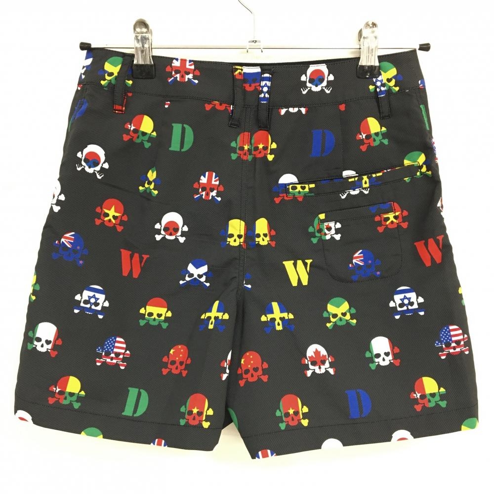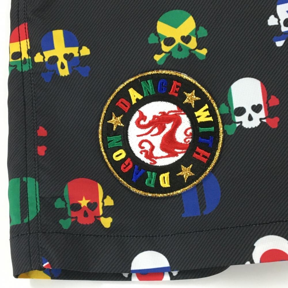 【美品】ダンスウィズドラゴン キュロットスカート 黒×マルチカラー スカル総柄 裾ロゴ レディース 1(S) ゴルフウェア Dance With Dragon