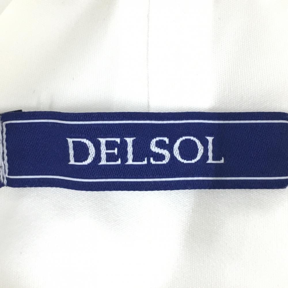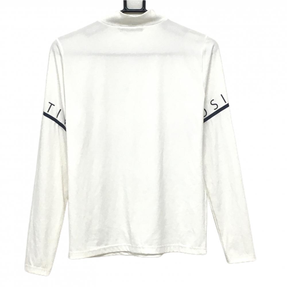 【美品】デルソル 長袖ハイネックシャツ 白×ネイビー 袖ロゴ メンズ M ゴルフウェア DELSOL
