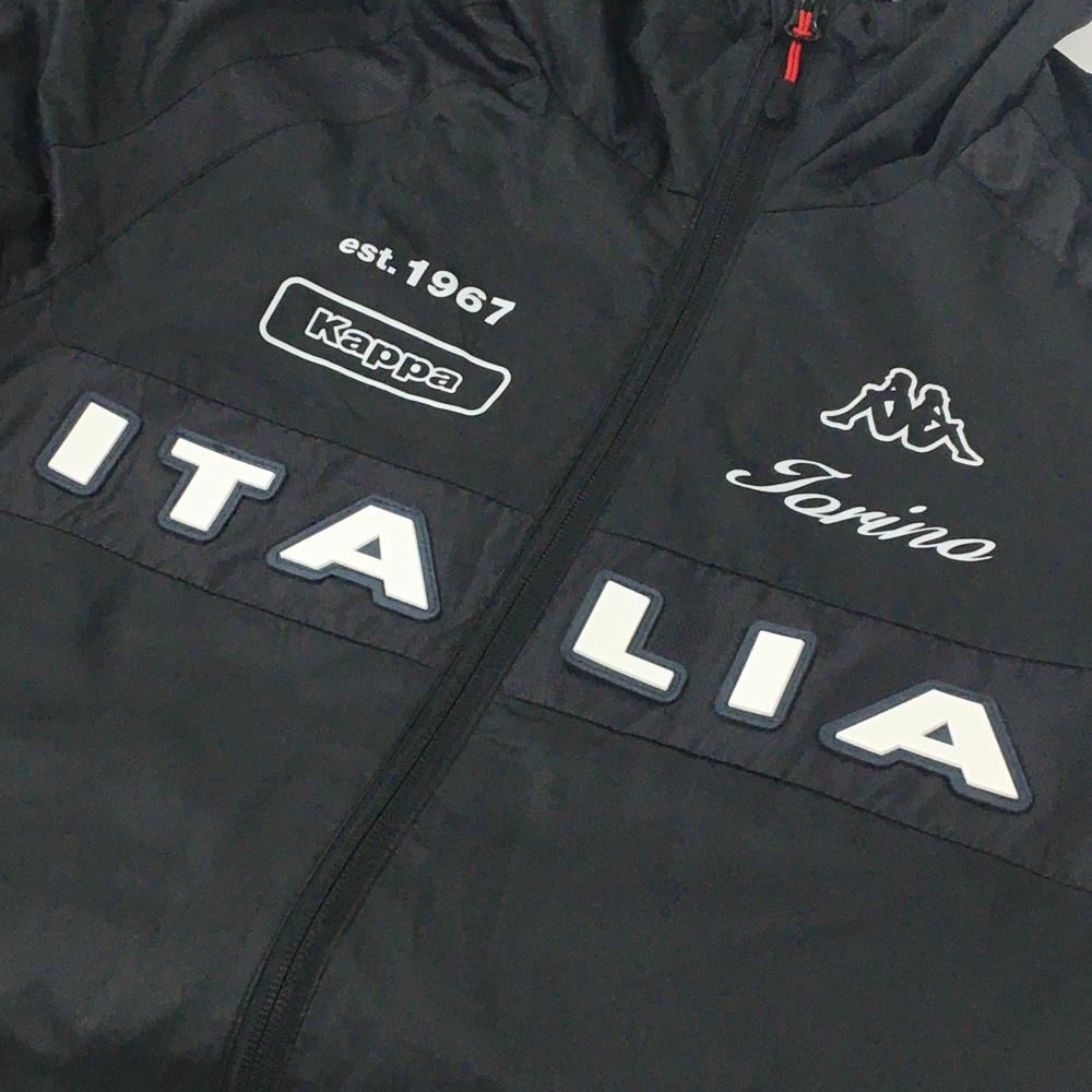 【美品】カッパ フード付ジャケット 黒×白 胸元ロゴ 微起毛裏地 裾ドローコード メンズ M ゴルフウェア Kappa