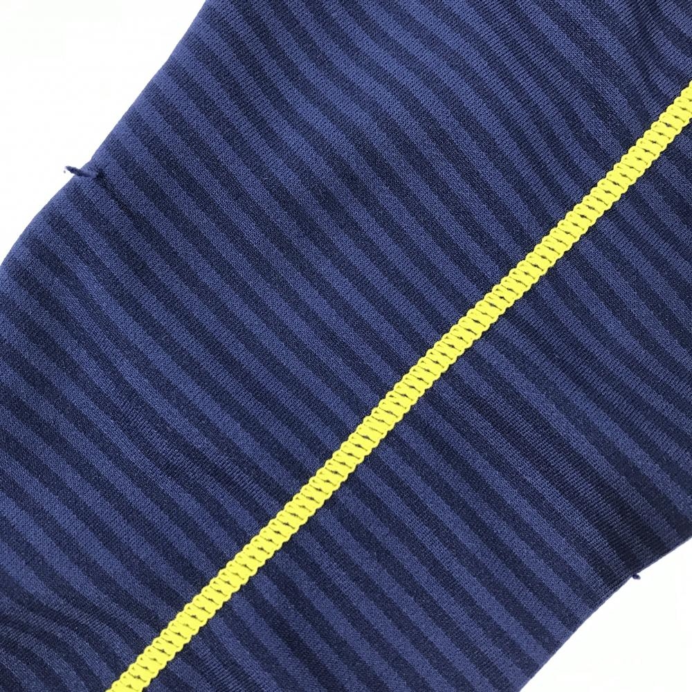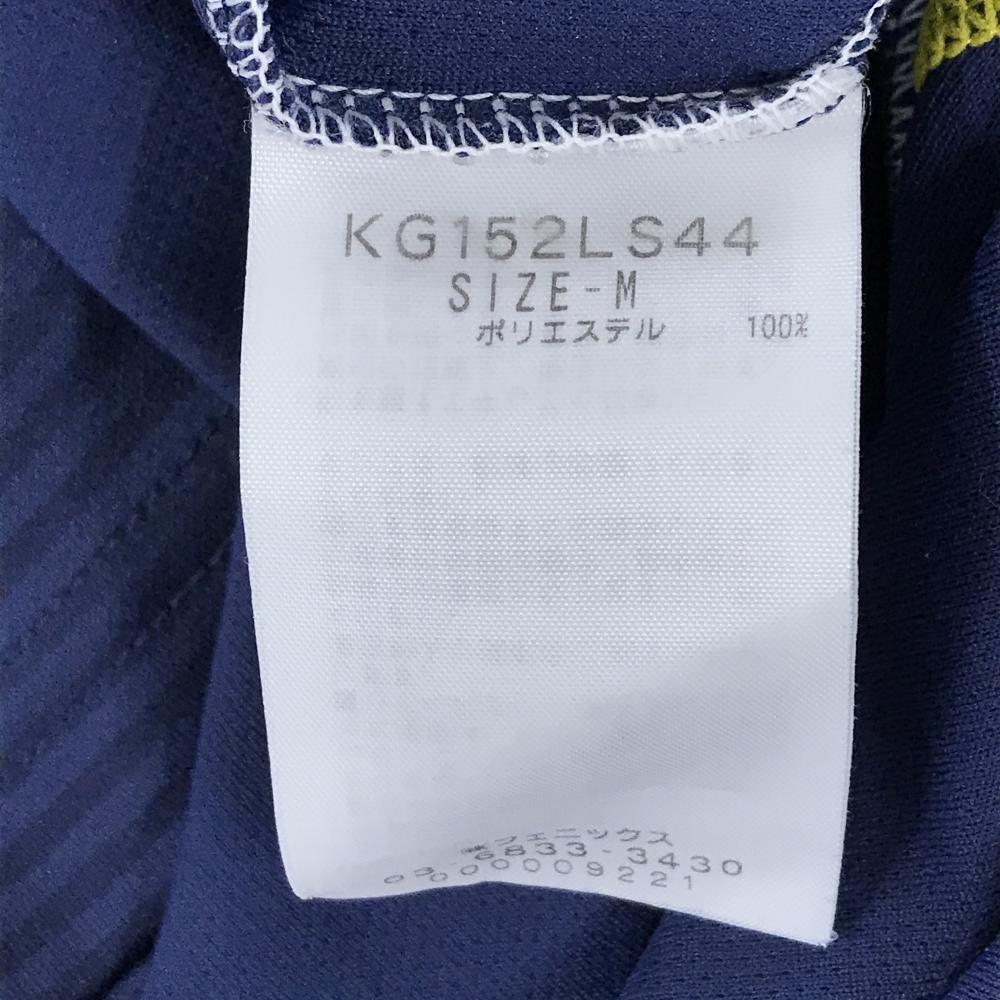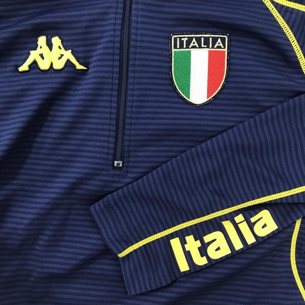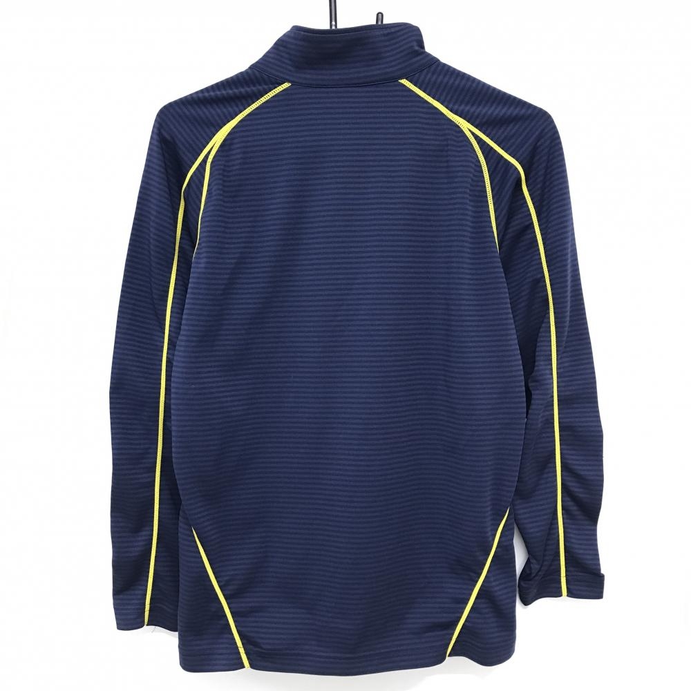 【美品】カッパ 長袖ハイネックシャツ ネイビー×イエロー ボーダー地模様 ロゴ刺しゅう ハーフジップ メンズ M ゴルフウェア Kappa