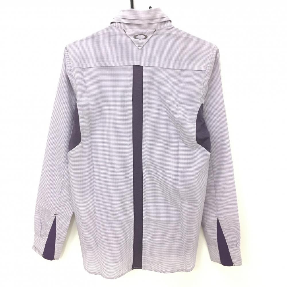 オークリー 長袖シャツ 白×パープル 地模様 ロゴ刺しゅう ボタンダウン メンズ M ゴルフウェア Oakley