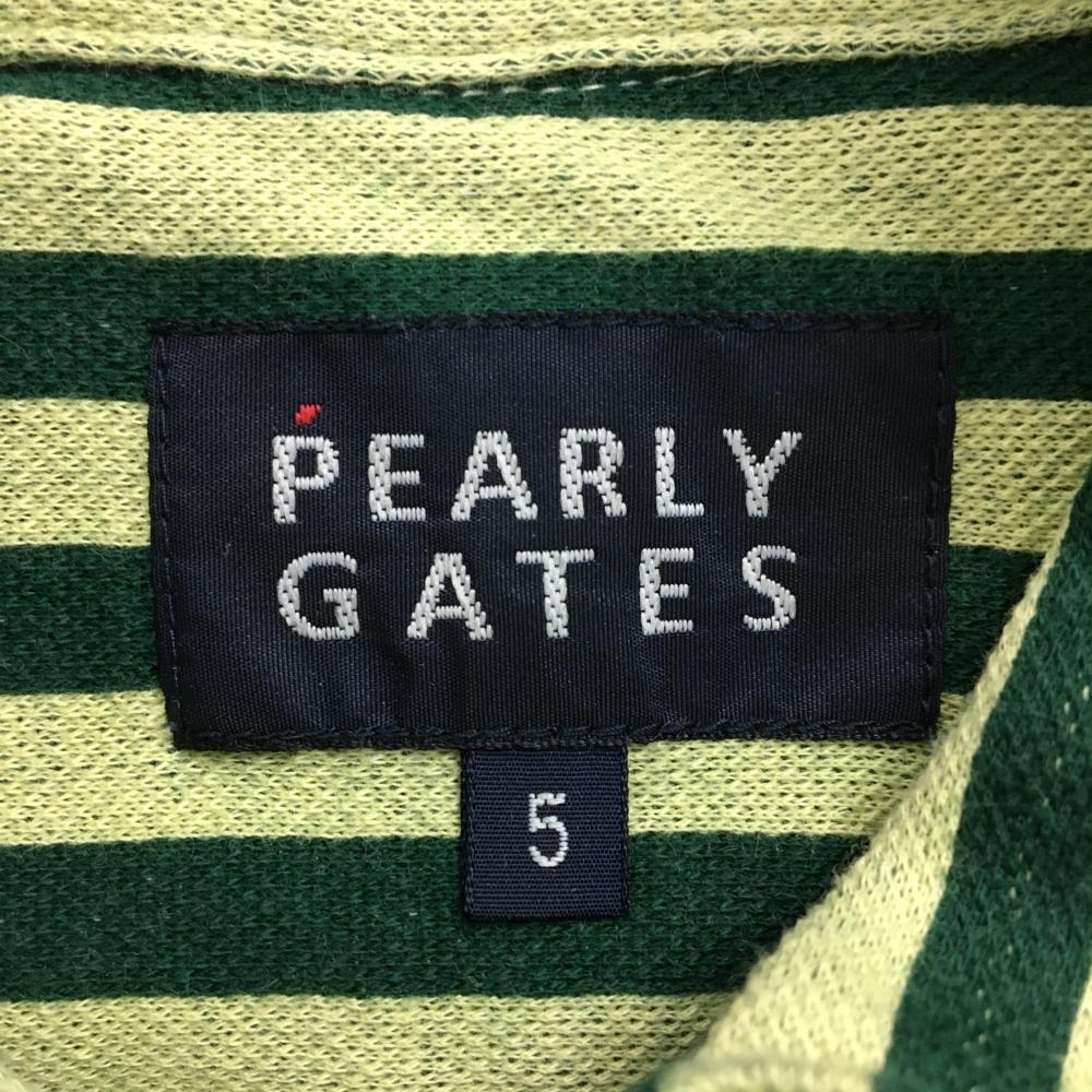 【超美品】パーリーゲイツ 長袖シャツ グリーン×ライトグリーン ストライプ ボタンダウン メンズ 5(L) ゴルフウェア PEARLY GATES