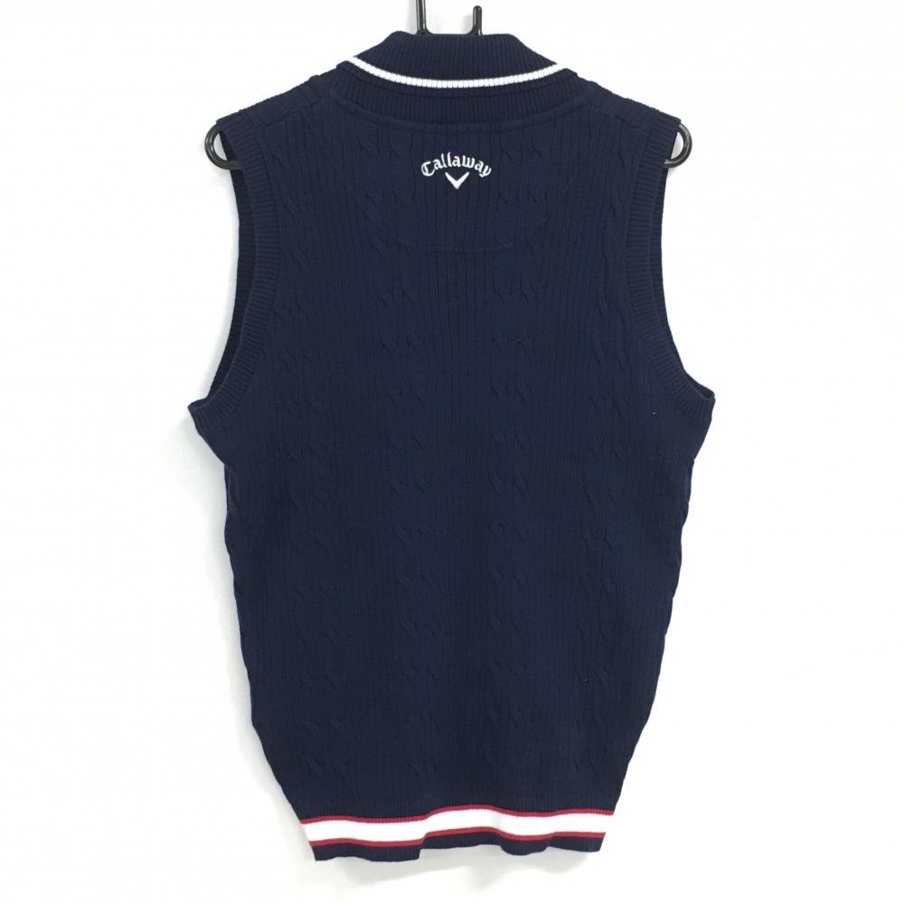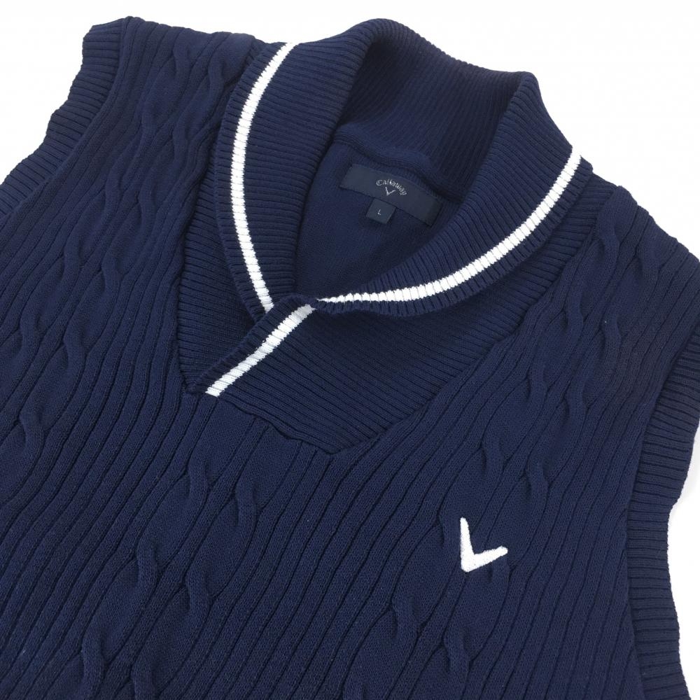キャロウェイ ニットベスト ネイビー ケーブル編み ショールカラー メンズ L ゴルフウェア Callaway