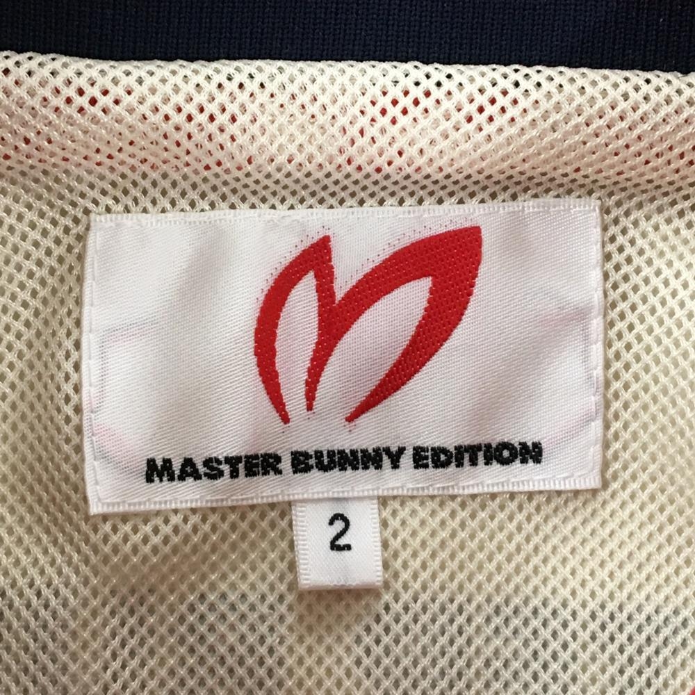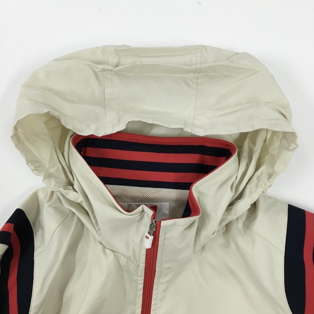 【美品】マスターバニー フード付ジャケット ライトベージュ×レッド×ネイビー レディース 2(L) ゴルフウェア MASTER BUNNY EDITION