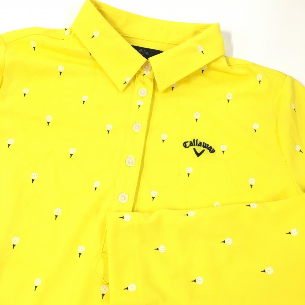 【超美品】キャロウェイ 長袖ポロシャツ イエロー×白 総柄 ロゴネイビー レディース LL ゴルフウェア Callaway