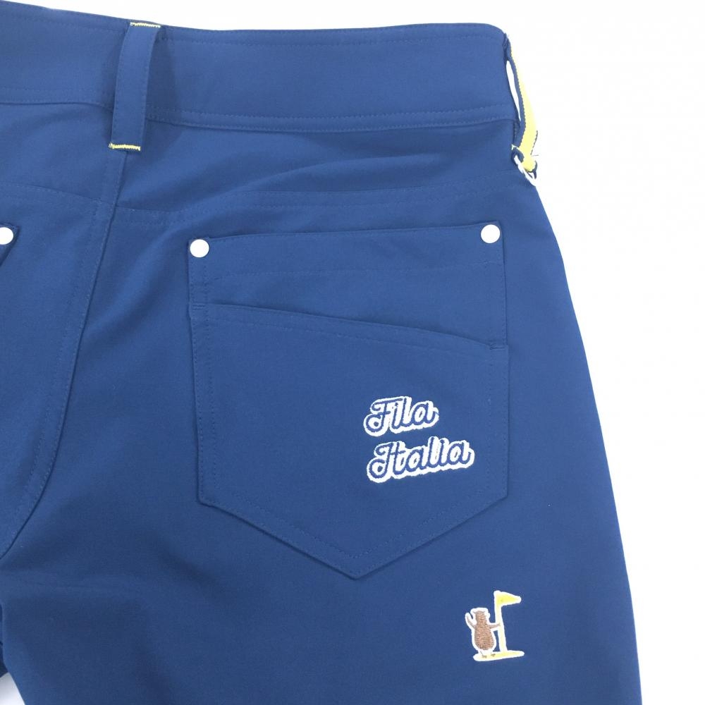 【超美品】フィラゴルフ パンツ ネイビー×イエロー 後ポケット刺しゅう ストレッチ レディース L ゴルフウェア FILA GOLF