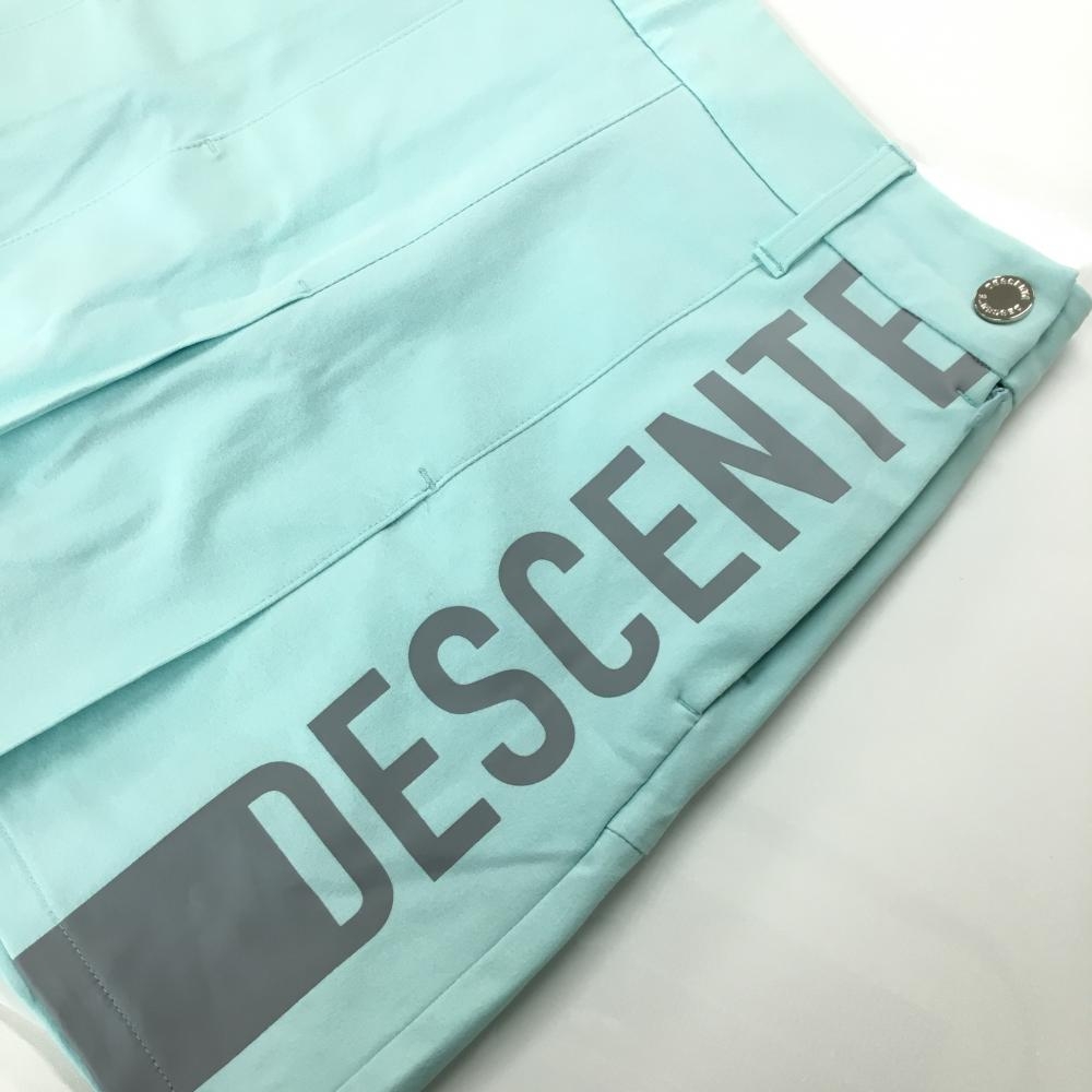 【美品】デサントゴルフ プリーツスカート ライトブルー×グレー ロゴプリント 中田英寿 レディース 58/SS ゴルフウェア DESCENTE