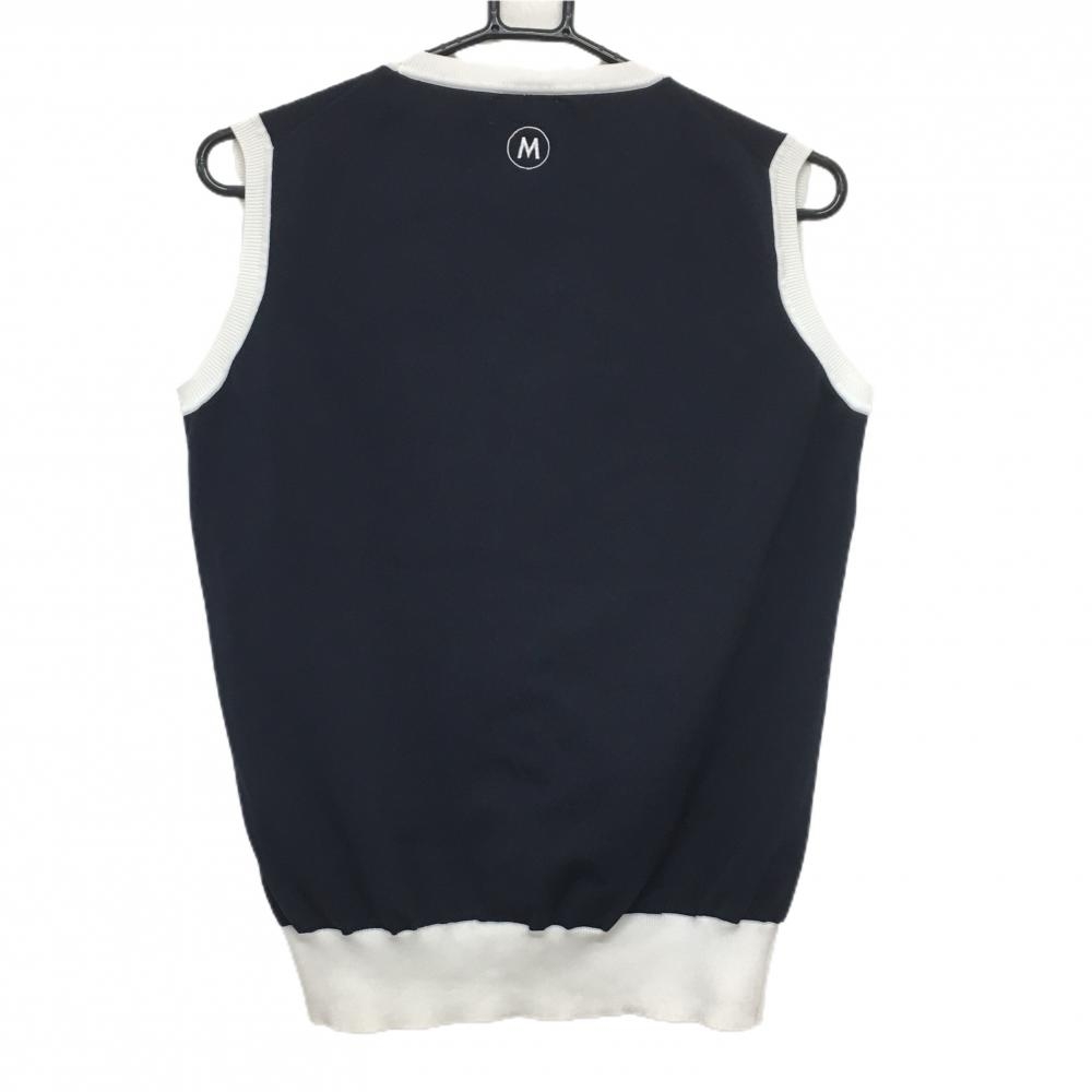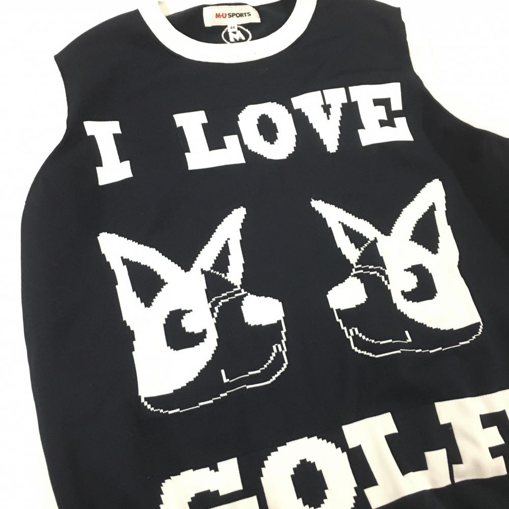 【美品】MUスポーツ ニットベスト ネイビー×白 犬 レディース 44(XL) ゴルフウェア M・U SPORTS
